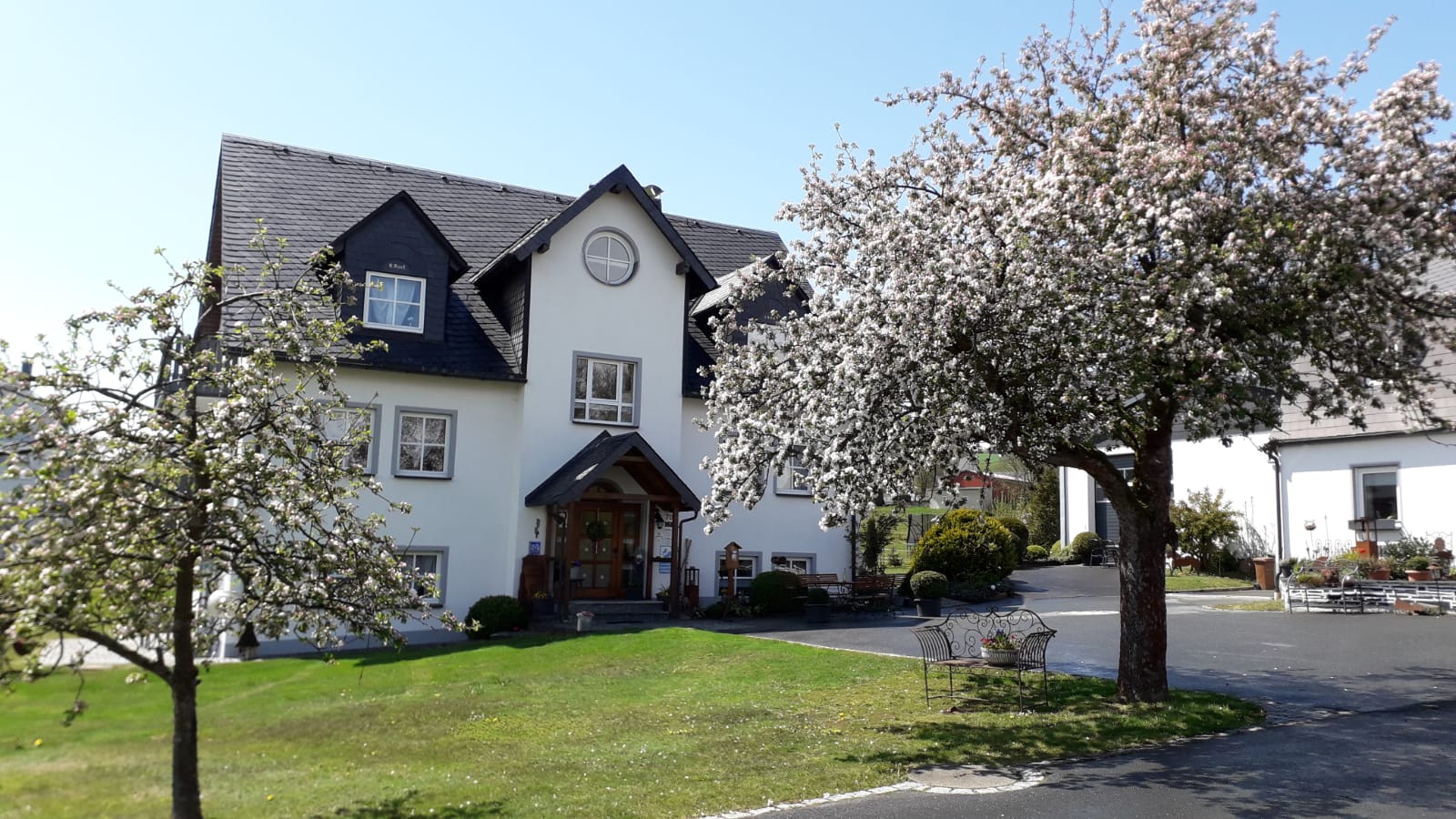 Der Frankenwaldhof liegt auf 630 Metern Höhe im Ortsteil Obersteben - in unmittelbarer Nähe zum Bayerischen Staatsbad Bad Steben. Nach nur zehn Minuten Fußweg befinden Sie sich bereits im Kurzentrum rund um Kurpark und Therme. Umgeben von saftig grünen Wiesen und viel Natur, hat jede Jahreszeit im Naturpark Frankenwald Ihre ganz besonderen Reize.