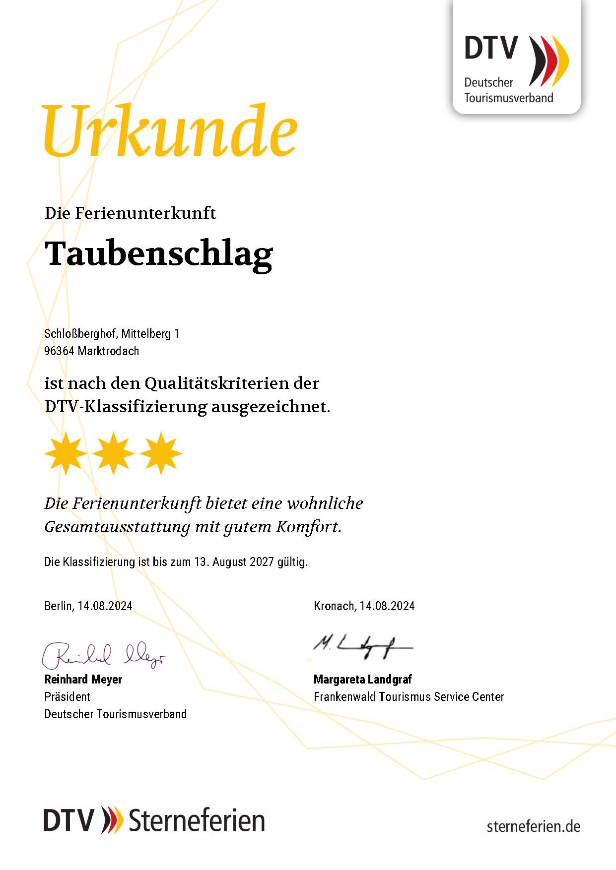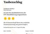 Unsere 3-Sterne-Ferienwohnung Taubenschlag (25qm) bietet Platz für 2 Personen. Das gemütliche Wohn-/Schlafzimmer ist mit einem Französischem Bett, einem bequemen Essbereich und Küchenzeile (2-Platten-Kochfeld, Mikrowelle, Toaster Wasserkocher, Kaffeemaschine, Kühlschrank, Gefrierfach)ausgestattet. Weitere Ausstattungsmerkmale sind: Zimmersafe, Telefon,Stereoanlage und FlachTV. Das Badezimmer besteht aus Dusche, WC und Waschbecken. Waschmaschine und Trockner befinden sich im Untergeschoß . Die Betten sind bezogen; Hand- und Tischwäsche wird gestellt. Die Nutzung von Sauna, Solarium, Waschmaschine, Wäschetrockner ist kostenpflichtig.WLAN wird kostenfrei angeboten! Zusatzangebote wie Frühstück, Brötchenservice, Führungen und Seminare bitte rechtzeitig buchen!