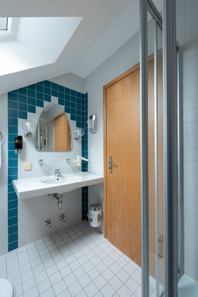Separates Badezimmer mit Dusche, WC, Fön und Kosmetikartikeln sind selbstverständlich vorhandenn, sowie Kosmetikartikel.