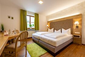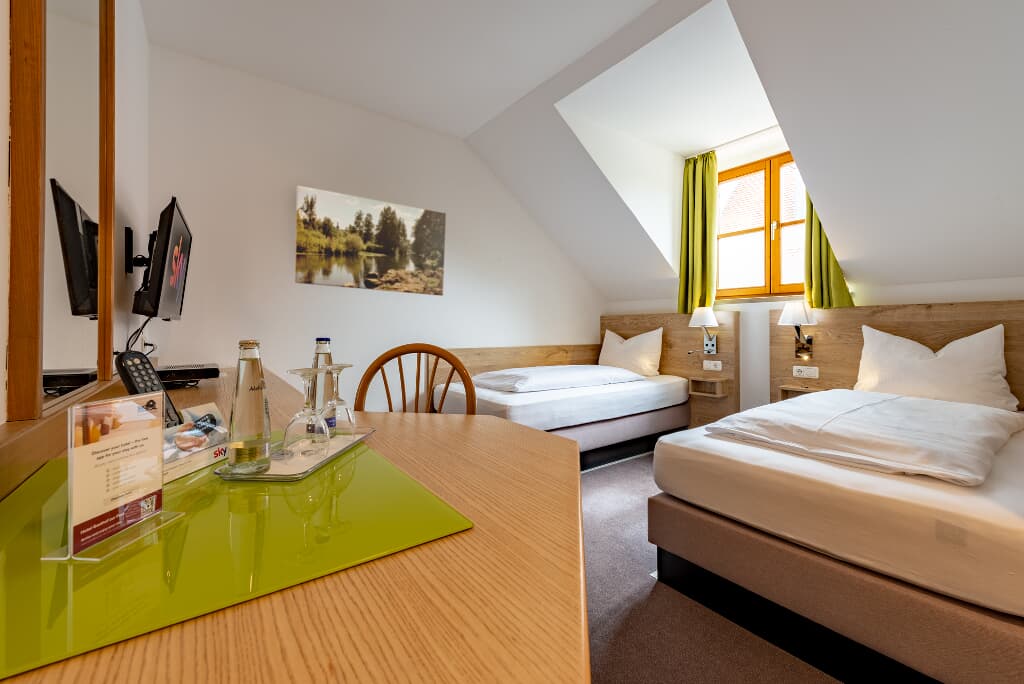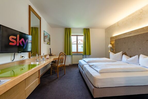 Fühlen Sie sich wohl in unseren Doppelzimmern mit hochwertigen Boxspringbetten ausgestattet, gratis Wasser, SKY und Highspeed WLAN
