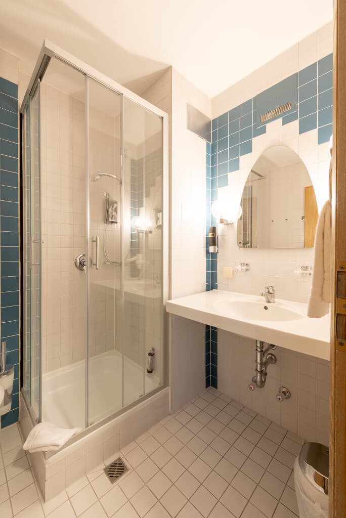 Separates Badezimmer mit Dusche, WC, Fön und Kosmetikartikeln sind selbstverständlich vorhanden