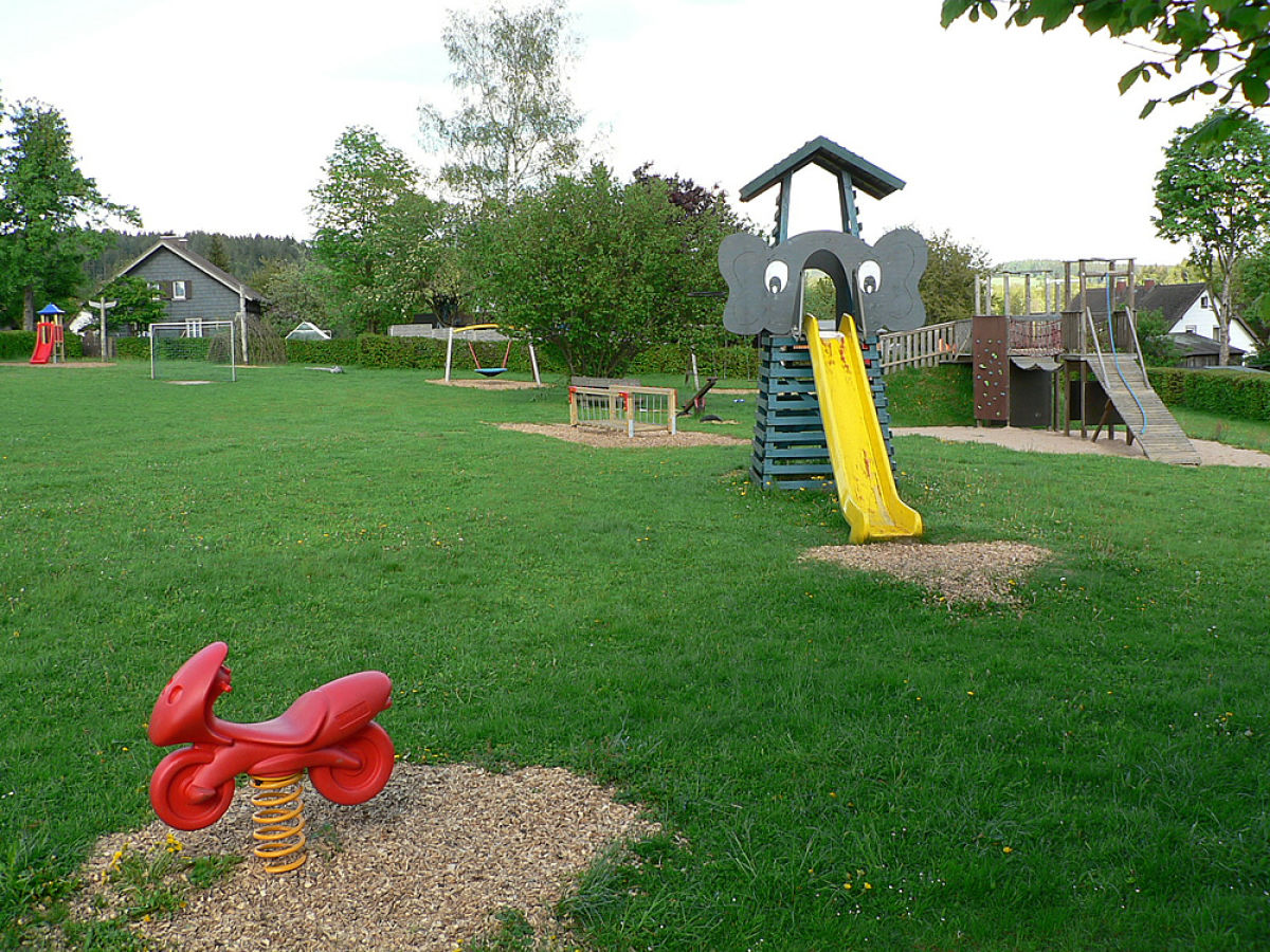 Ein großer Garten mit Kinderspielplatz steht zur