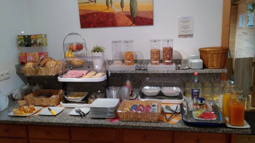 Ebenso bietet unser Haus Frühstücksbuffet, Sektfrühstück, Pauschalangebote, Waschmaschine und Trockner, geschlossenen Innenhof mit Grillmöglichkeiten.