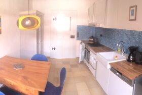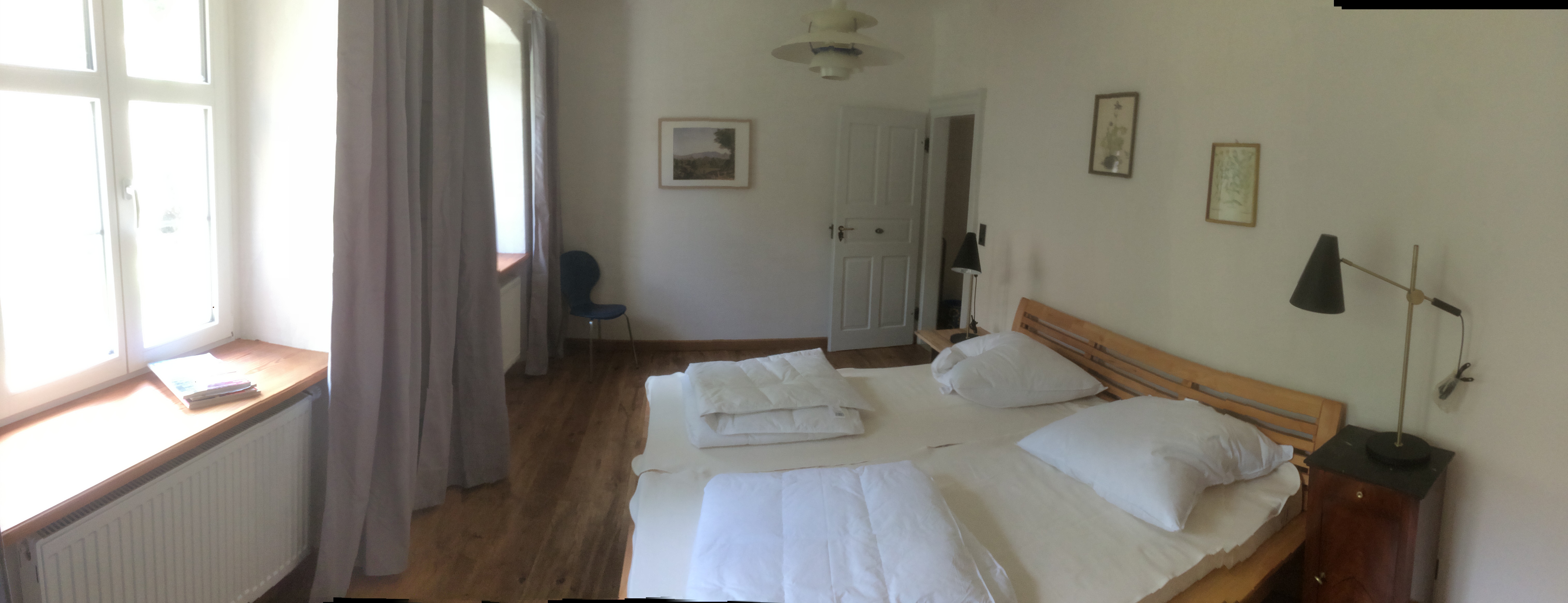 Die Schulwohnung ist 60 qm gross und verfügt über ein Schlafzimmer mit einem Doppelbett , ein geräumiges Wohnzimmer mit einem zubuchbarem großen Schlafsofa (B: 140 cm) mit Sat TV , Küche mit Essecke sowie Spülmaschine und ein Tageslicht Bad mit barrierefreier Dusche sowie Badewanne.