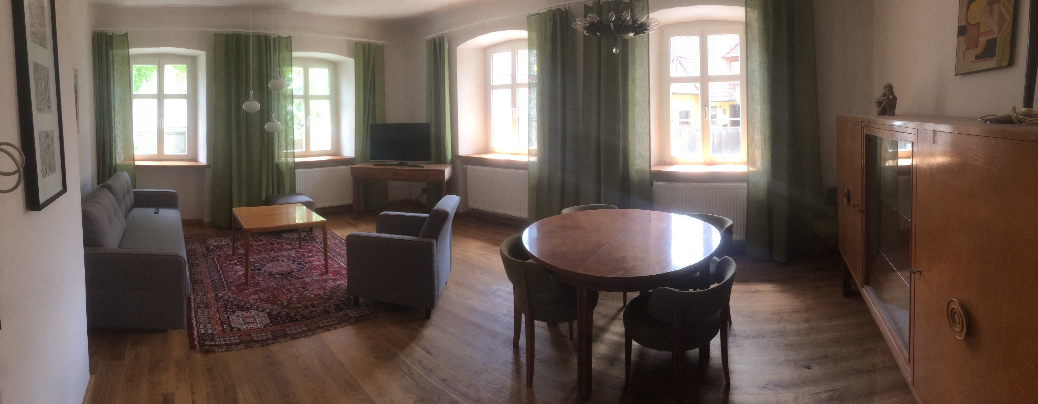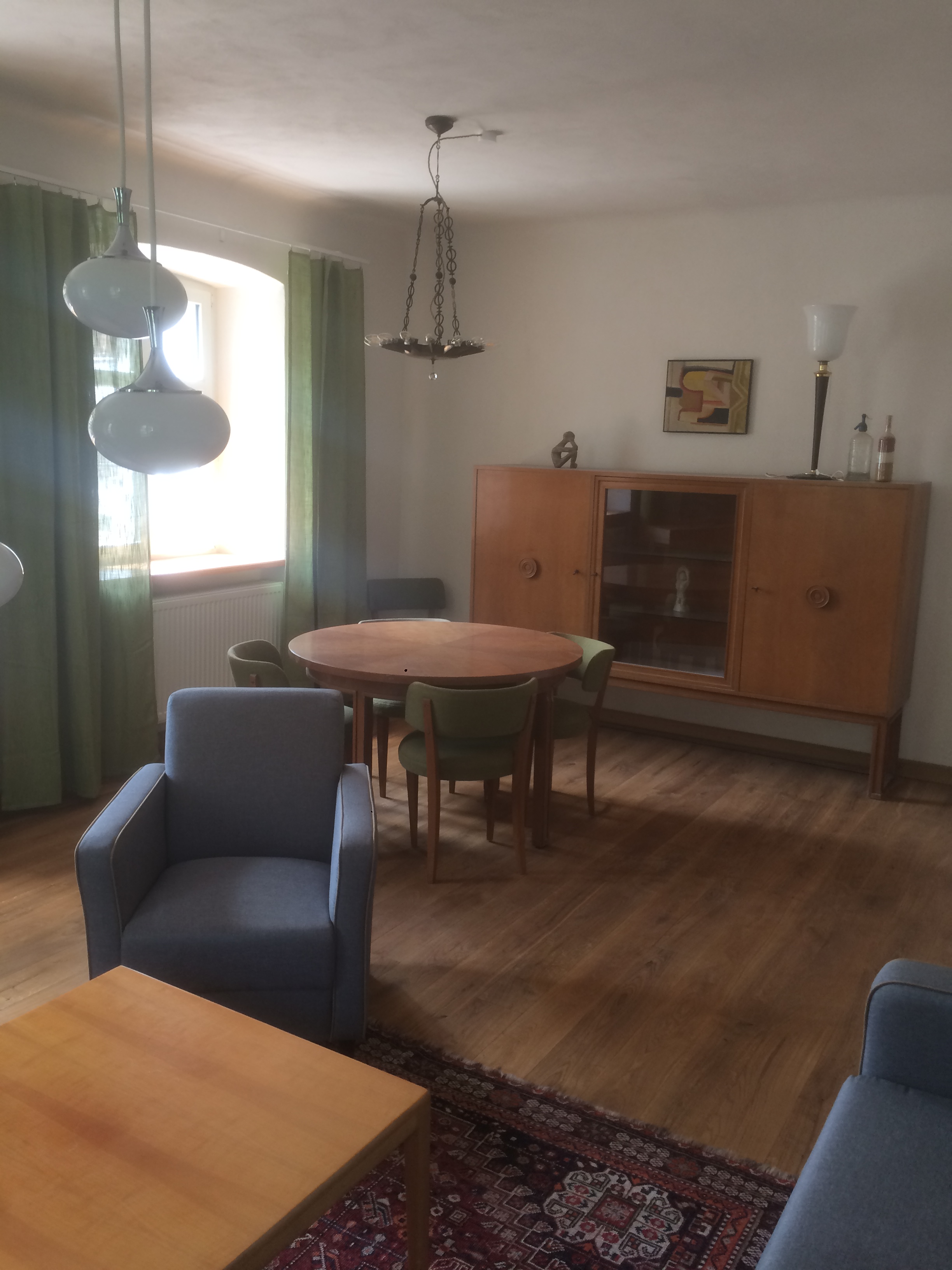 Sie ist mit hochwertigen Antiquitäten und Designer Möbel, in einem zeitgemäßen Mix, ausgestattet.