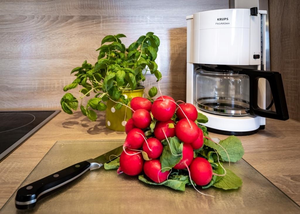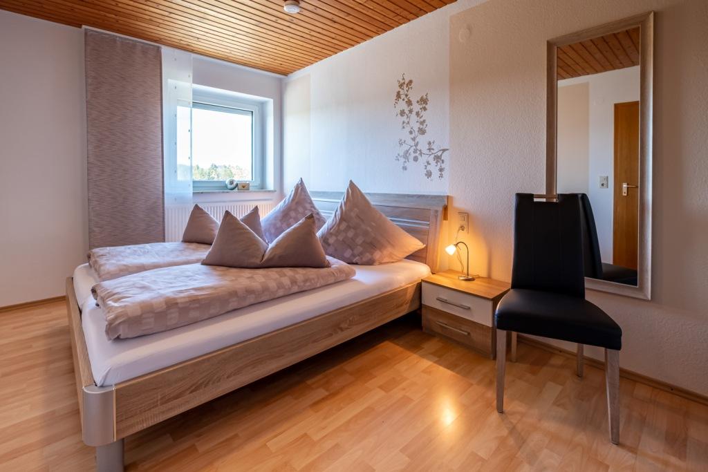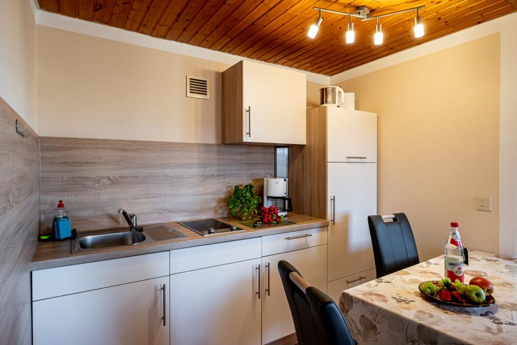 Unsere ebenerdige 2-Raum Ferienwohnung ist ca. 40m² groß. Im Wohnzimmer ist eine Aufbettung für 2 Personen möglich. Eine Essecke befindet sich im Wohnraum. Die Küche ist offen zum Wohnzimmer und mit modernen Küchengeräten ausgestattet, inkl. Mikrowelle, Kühlschrank mit Gefrierfach, 2 Zonen Cerankochfeld. Das Badezimmer mit Dusche und WC ist vom Schlafzimmer aus begehbar. Im Schlafzimmer steht ein Doppelbett mit offenem Fußteil. Die Terrasse befindet sich vor der Wohnung. Ihr Feriendomizil ist mit Buchenlaminat ausgelegt, die Fenster sind durch Fliegengitter geschützt. Bettwäsche, Handtücher, Geschirrtücher, Geschirr, wie auch Toilettenpapier und Putzmittel sind im Preis inbegriffen. Parkplätze sind ausreichend vorhanden. Fahrräder und Bikes können im Nebengebäude kostenlos abgestellt werden. In unserem Betrieb sind weitere Ferienwohnungen wählbar.