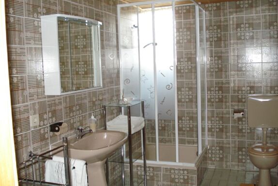 Sanitär: WC und Dusche, Waschbecken, Kosmetikspiegel, Fön