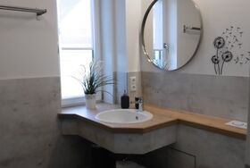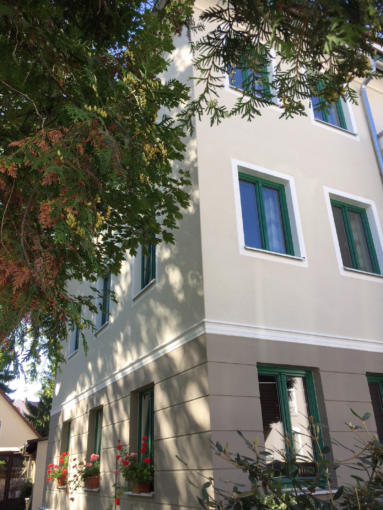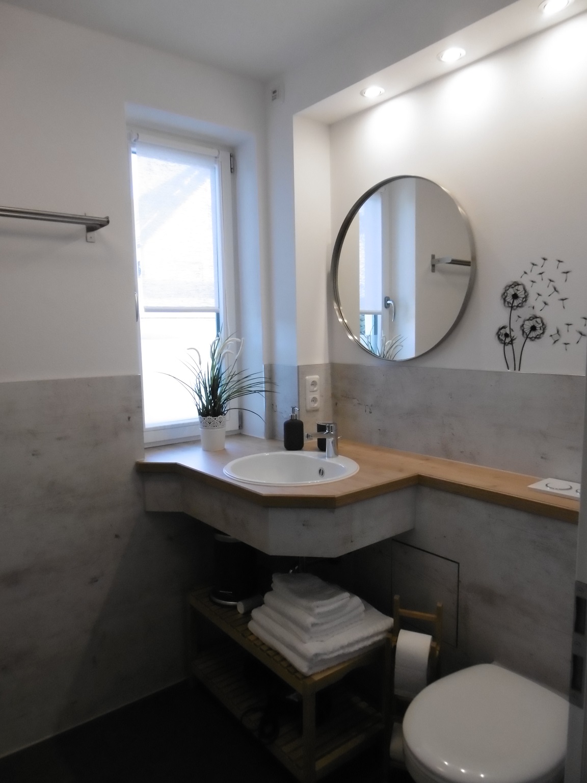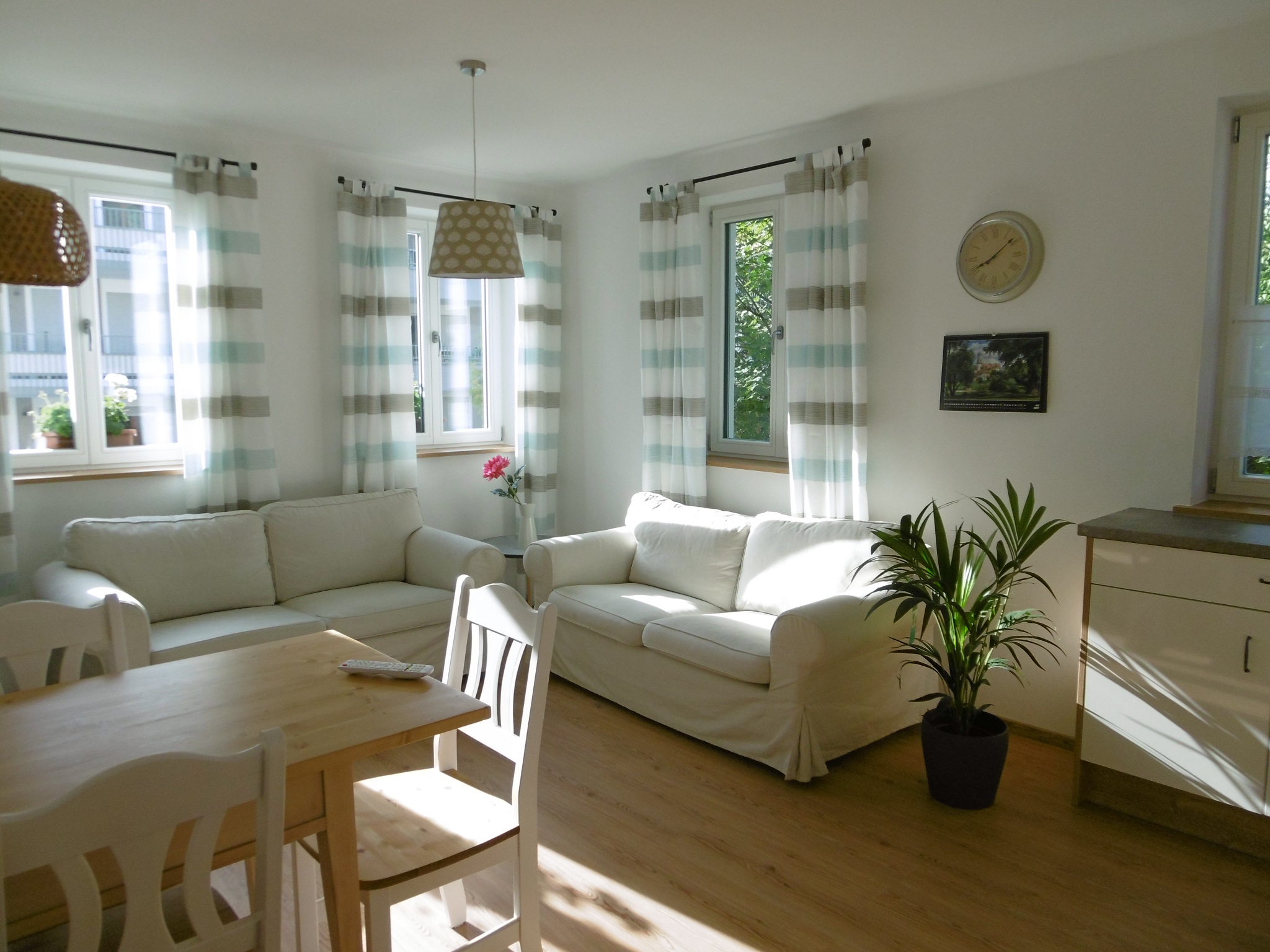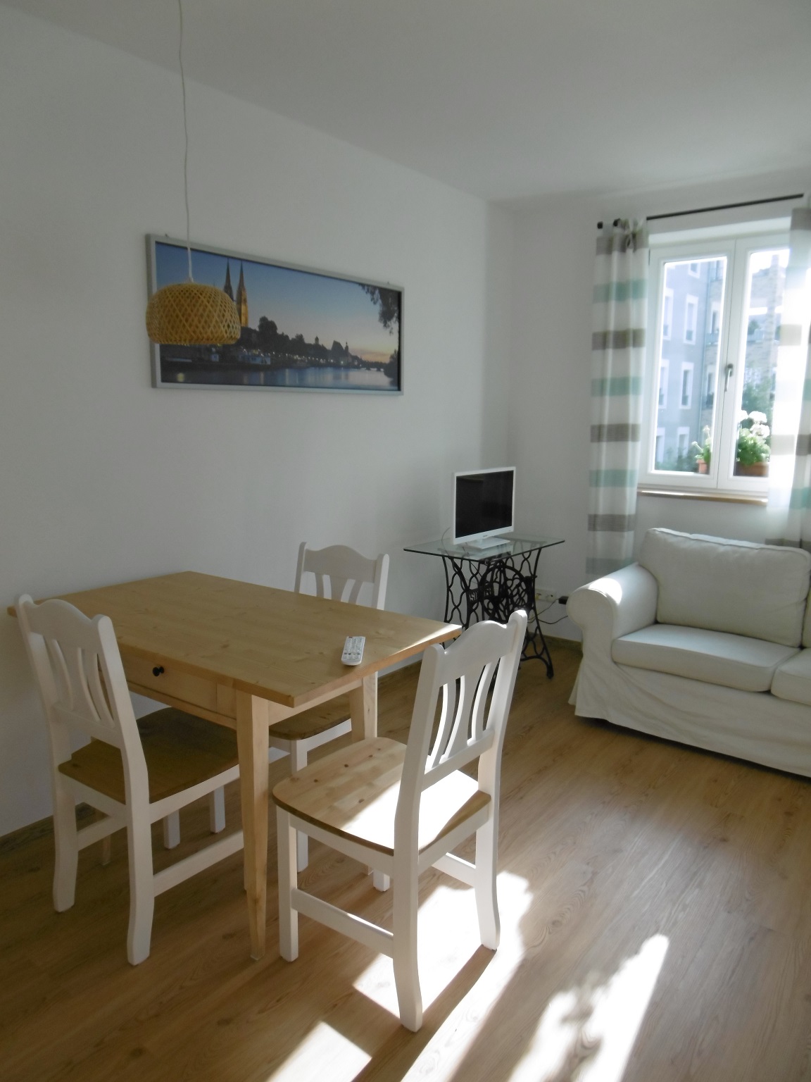 Die Neubauwohnung ist für 2 Personen geeignet und ist nach Osten und Süden ausgerichtet mit Blick in den Garten der Gastgeber mit altem Baumbestand. Außergewöhnlich in der Osten-Vorstadt. Sie wohnen in der Nähe des Marina-Forums und sind zu Fuß in 5-10 Min. in der Regensburger Altstadt und am Donau-Ufer. Die Wohnung befindet sich im ersten Stock und verfügt über ein Schlafzimmer mit Doppelbett, ein Badezimmer mit WC und Dusche und eine Wohnküche mit Fernseher und DVD-Player. Die Küchenzeile ist ausgestattet mit einem Kühlschrank, Toaster, Geschirrspüler und Backofen.