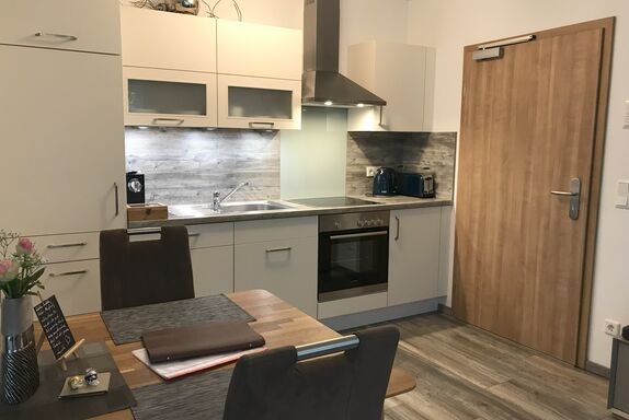 Unser modern und gemütlich eingerichtetes 2 - Zimmer - Appartement mit 50 qm für max. 2 Personen verfügt über ein schönes Schlafzimmer, ein Wohnzimmer mit Wohnküche, einen großen überdachten Balkon und ein modernes Badezimmer mit begehbarer barrierefreier Dusche.