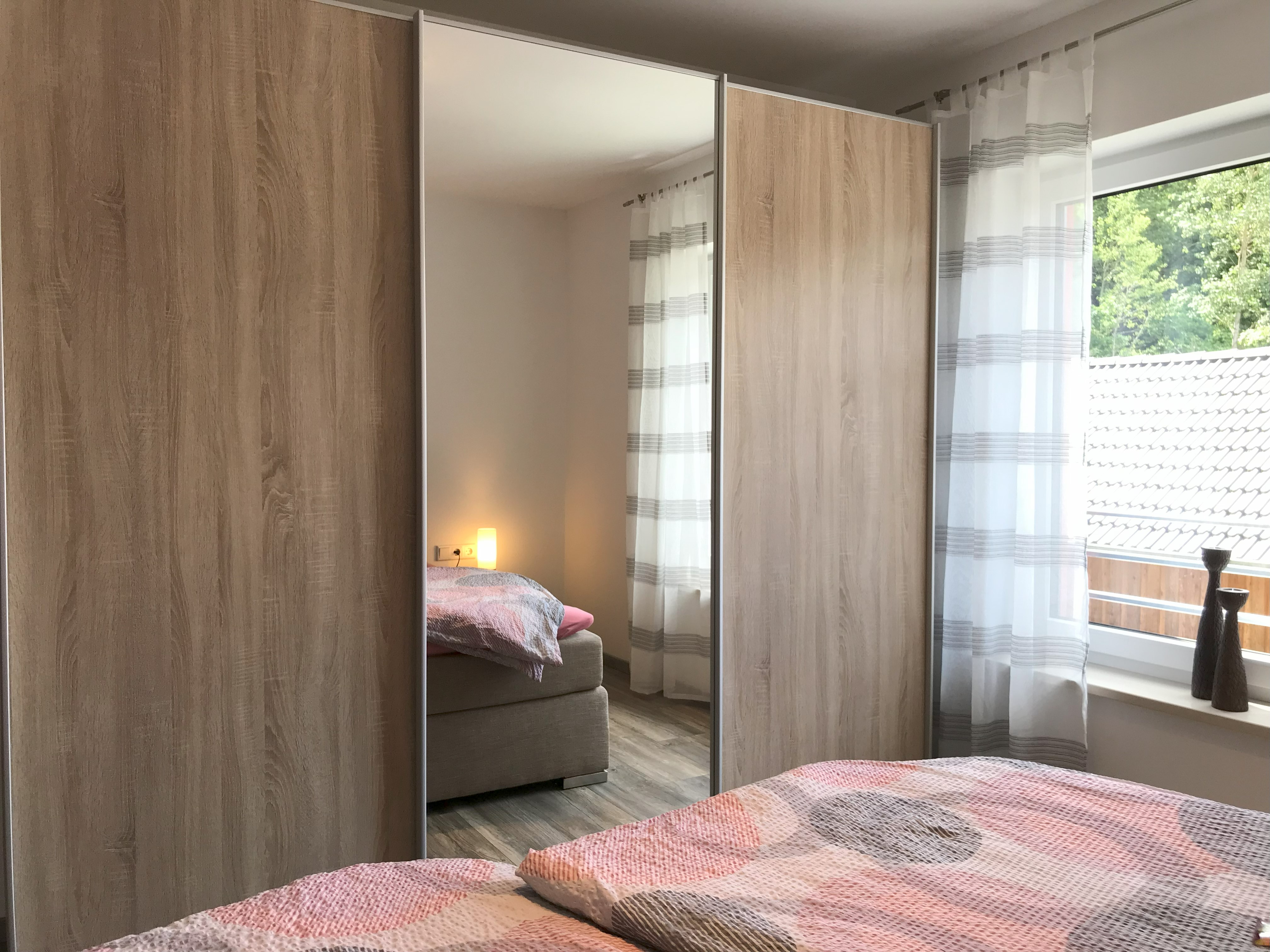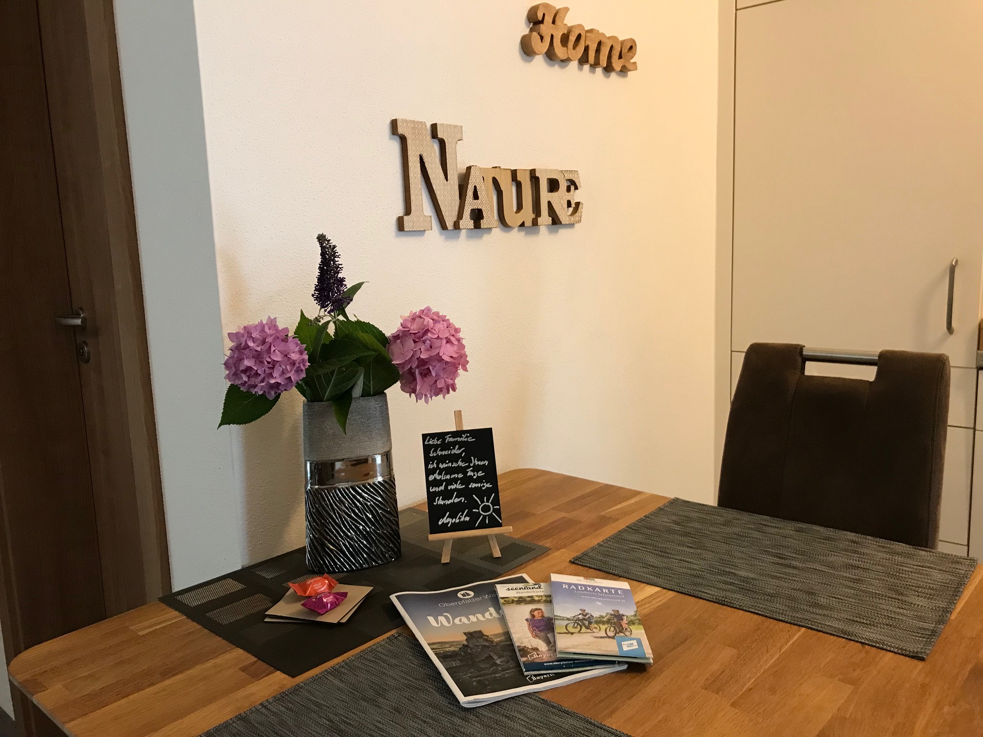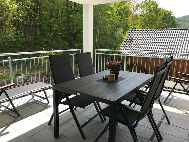Das Appartement befindet sich im OG und hat einen schönen Ausblick in den Wald und ins Regental. Hier können Sie die Ruhe und den Ausblick in die Natur genießen.