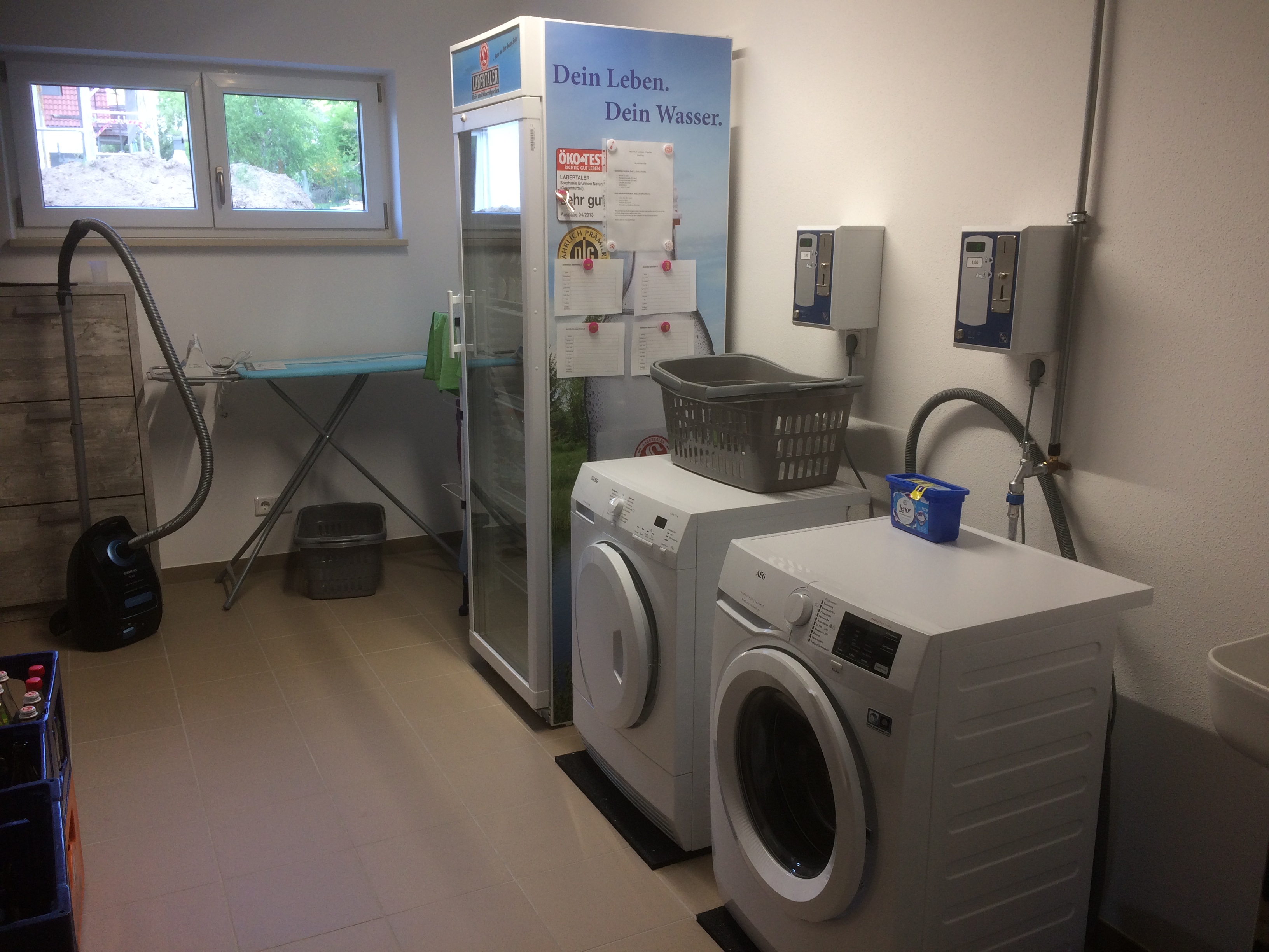 Waschmaschine und Trockner können gegen eine kleine Gebühr genutzt werden.