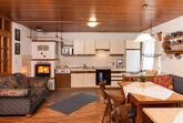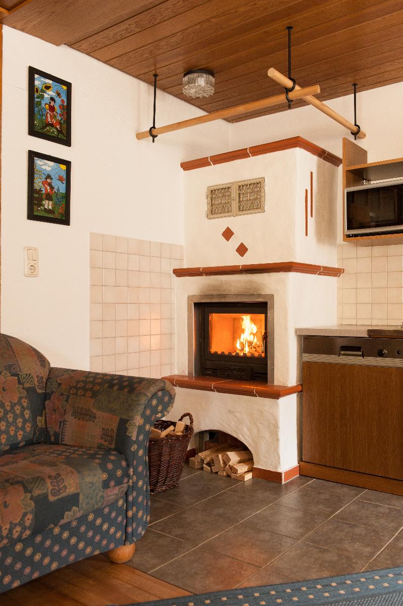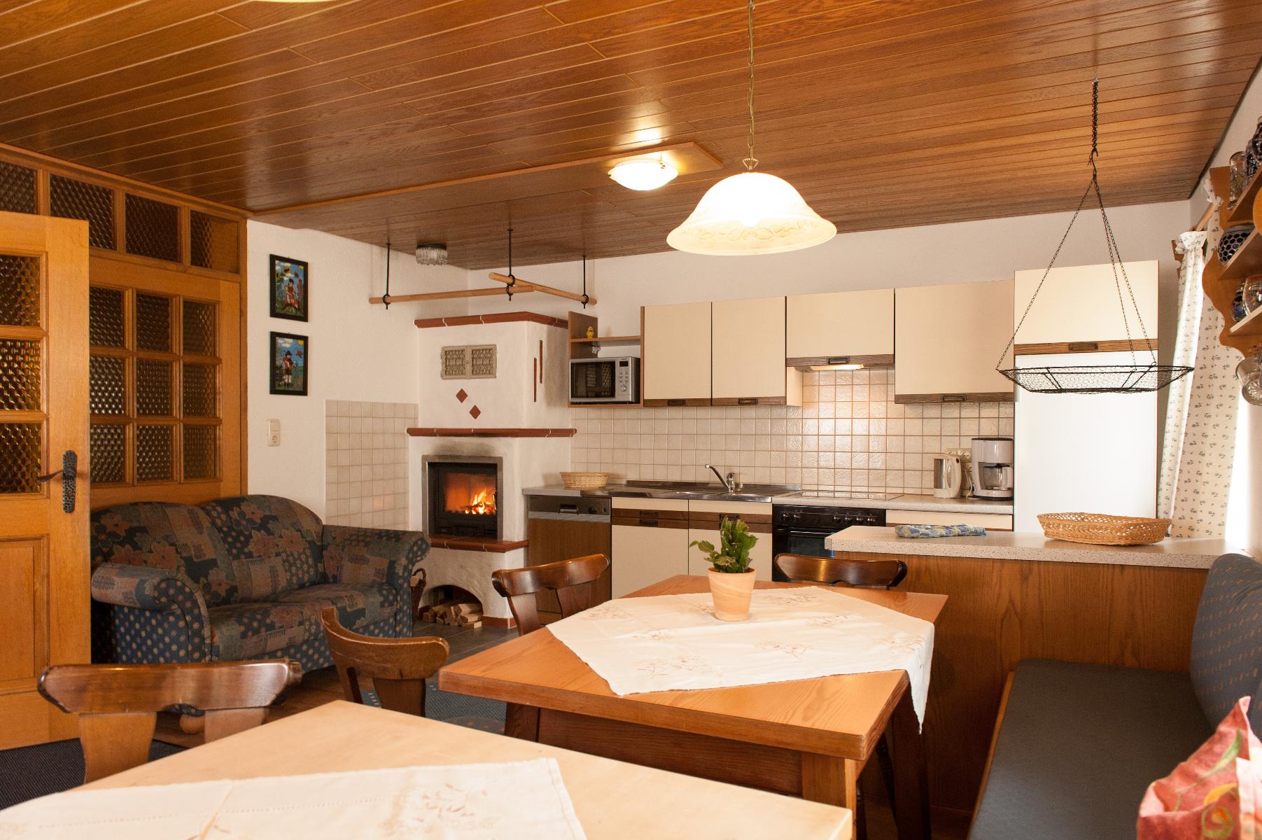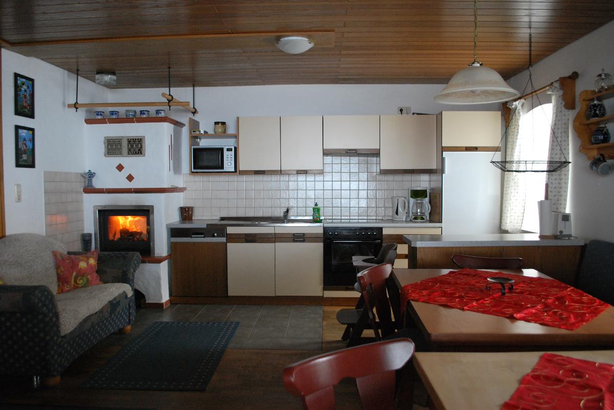 gemütlichen Wohnraum mit Küche, Geschirrspüler und Holzofen, Sat-TV und