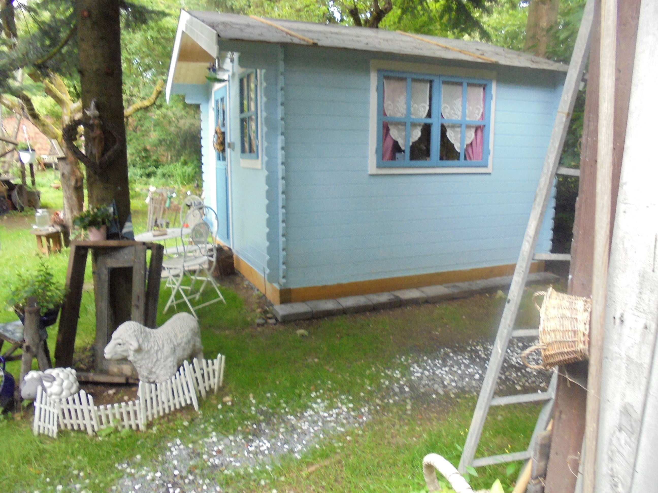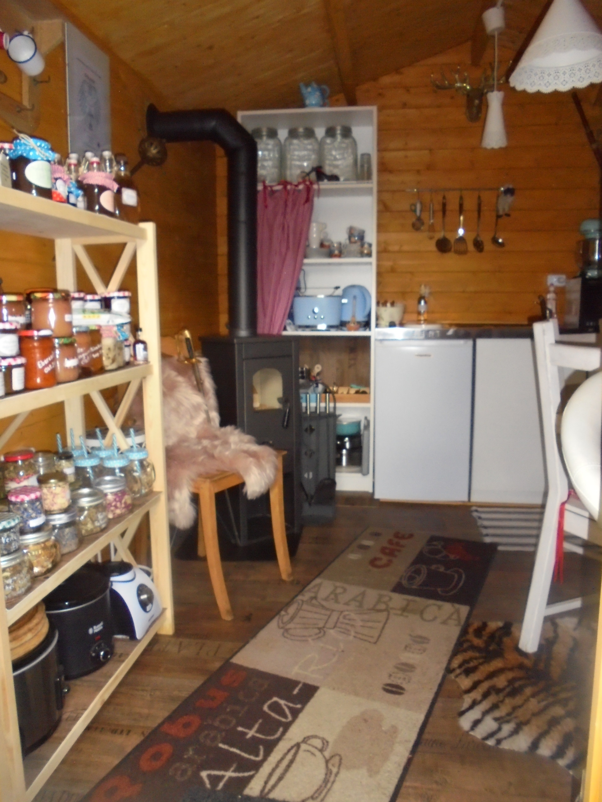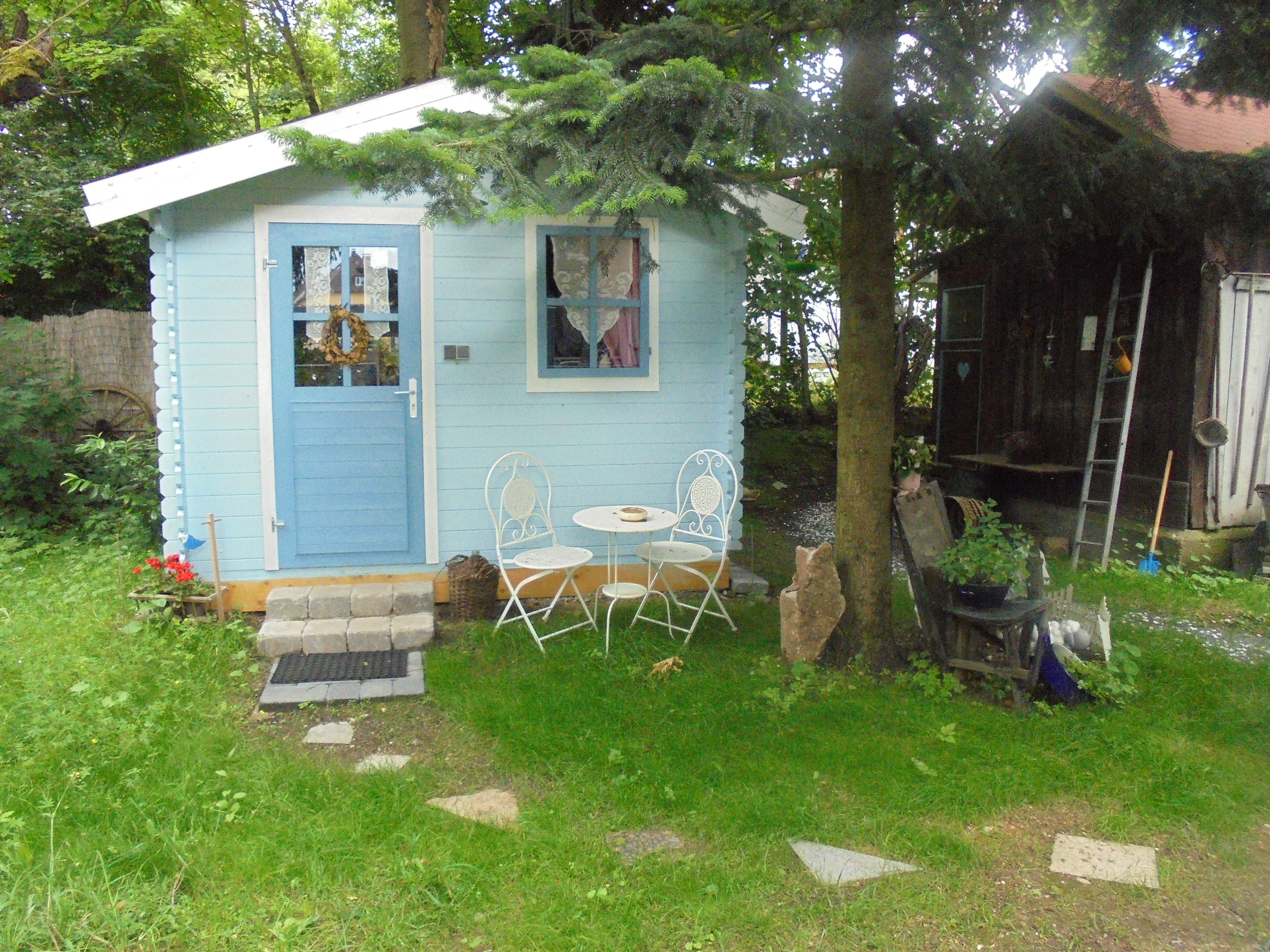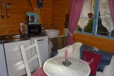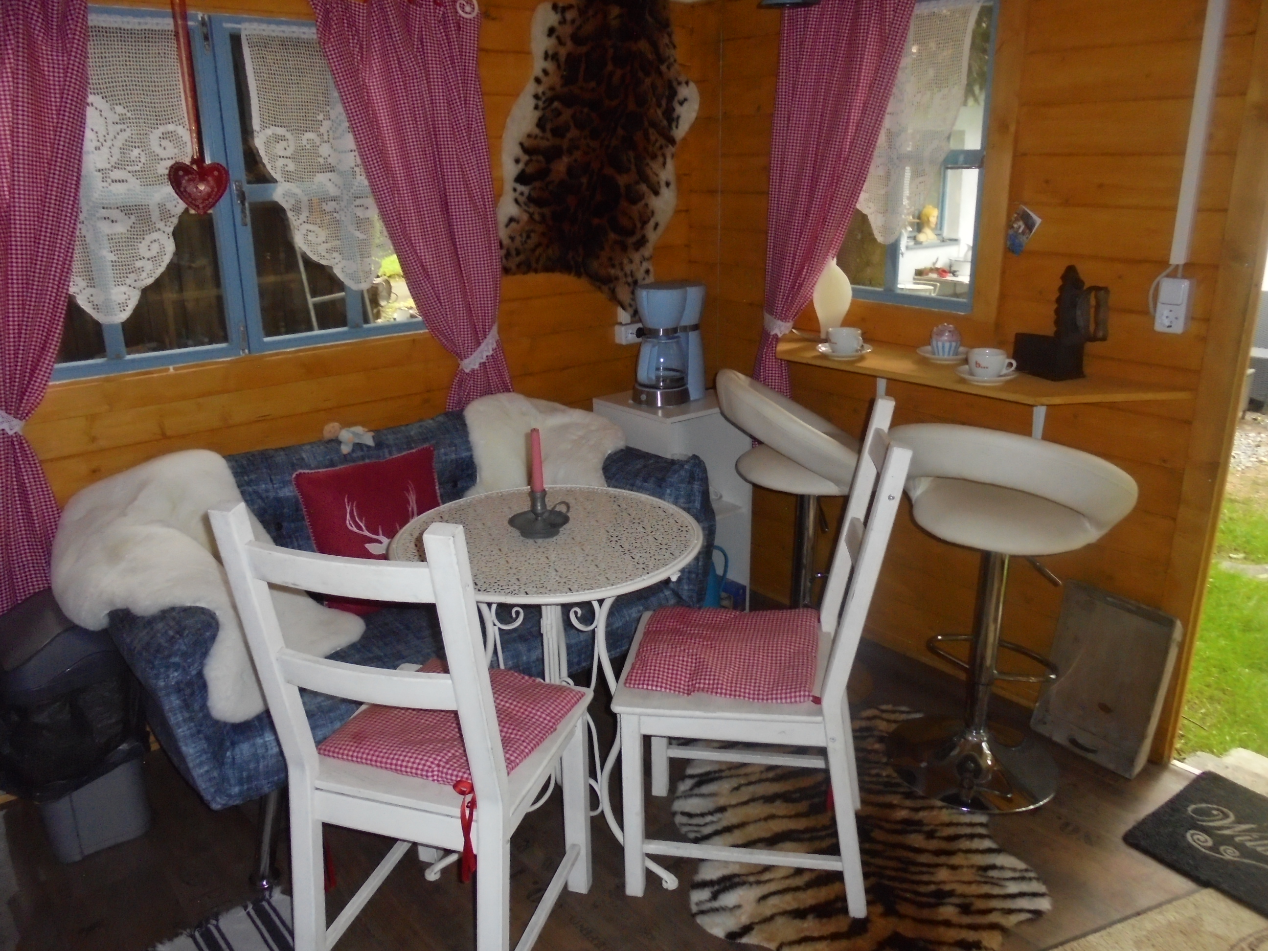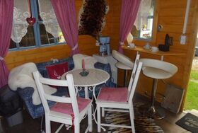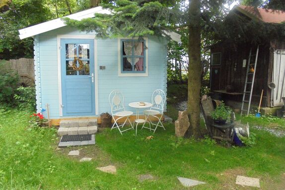 Inmitten eines schönen Romantikgarten, befindet sich das Tinyhaus 1, welches aus finnischen Holz in blauer Farbe erstrahlt. Direkt neben Lissys Romantik-Puppenhaus, welches aufgrund seiner Einrichtung sowohl einen romanti-schen als auch einen rustikalen Flair ausstrahlt, finden Sie einen Steingrill und ein Gourmetgrill vor, wo die lauen Sommerabende genossen werden können. In dem historischen Blockbohlenhaus können Sie von einer kleinen Küchenzeile mit Infrarotbackofen, Spülmaschine und separaten Handwaschbecken bis hin zu einer auskappbaren Bettcouch mit Bettwäsche entdecken. Die romantische Atmosphäre wird durch den offenen Kaminofen unterstützt und strahlt ein gemütliches Ambiente aus. Die Toilette und Dusche ist links nebenan.