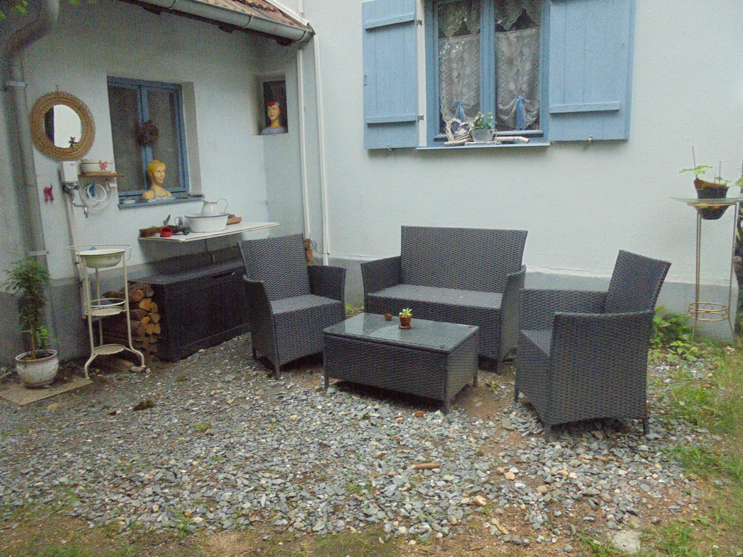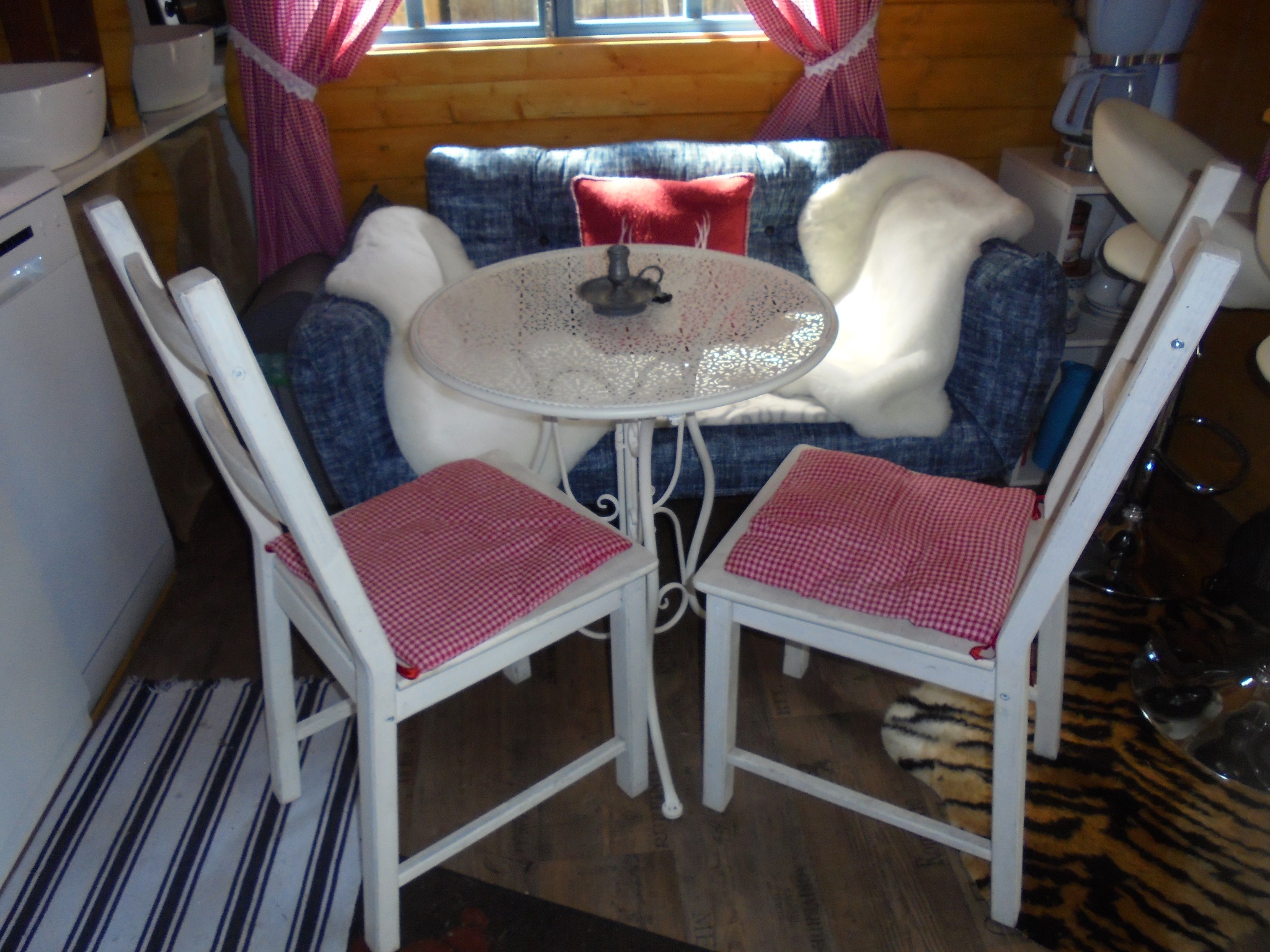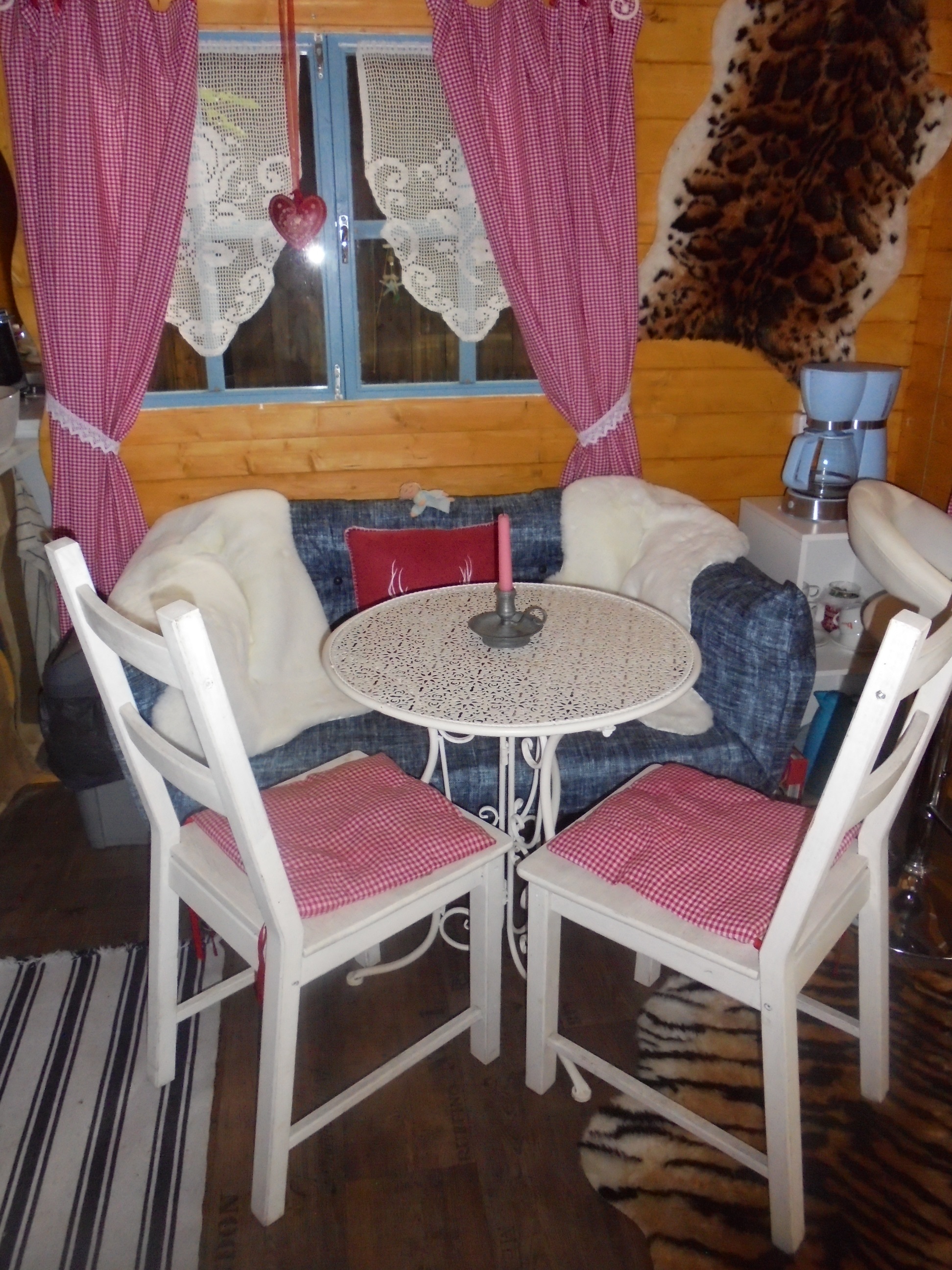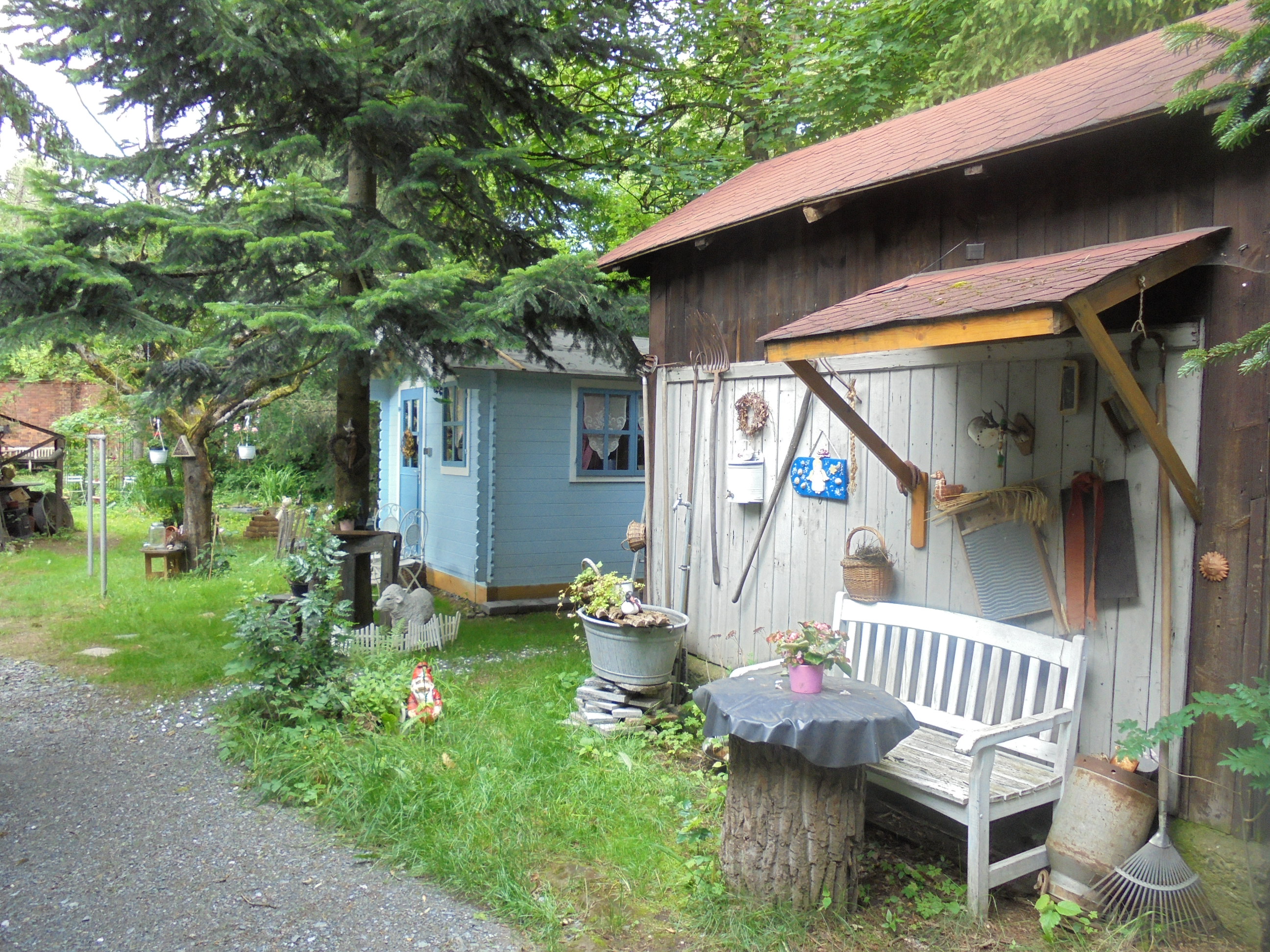 Inmitten eines schönen Romantikgarten, befindet sich das Tinyhaus 1, welches aus finnischen Holz in blauer Farbe erstrahlt. Direkt neben Lissys Romantik-Puppenhaus, welches aufgrund seiner Einrichtung sowohl einen romanti-schen als auch einen rustikalen Flair ausstrahlt, finden Sie einen Steingrill und ein Gourmetgrill vor, wo die lauen Sommerabende genossen werden können. In dem historischen Blockbohlenhaus können Sie von einer kleinen Küchenzeile mit Infrarotbackofen, Spülmaschine und separaten Handwaschbecken bis hin zu einer auskappbaren Bettcouch mit Bettwäsche entdecken. Die romantische Atmosphäre wird durch den offenen Kaminofen unterstützt und strahlt ein gemütliches Ambiente aus. Die Toilette und Dusche ist links nebenan.