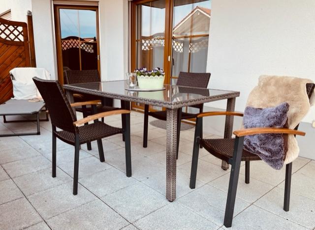 Terrasse. Sie bietet Internet W-Lan, Wohn-Ess-Zimmer mit Erkerbereich, SAT-TV,