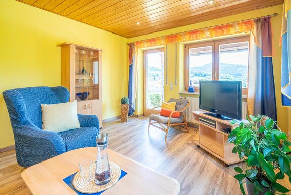 Unsere Ferienwohnung 2 ist komplett ausgestattet mit Küche (Backofen, Mikrowelle, Kaffeemaschine), Sitzgruppe, Wohnzimmer mit Flat-TV und gemütlicher Couch mit Ohrensessel, Schlafzimmer, Dusche/WC mit Föhn und Fenster. Seperater Eingang. Auf der Sonnenterrasse können Sie herrlich entspannen und den Blick auf die tolle Landschaft von Bodenmais geniessen.