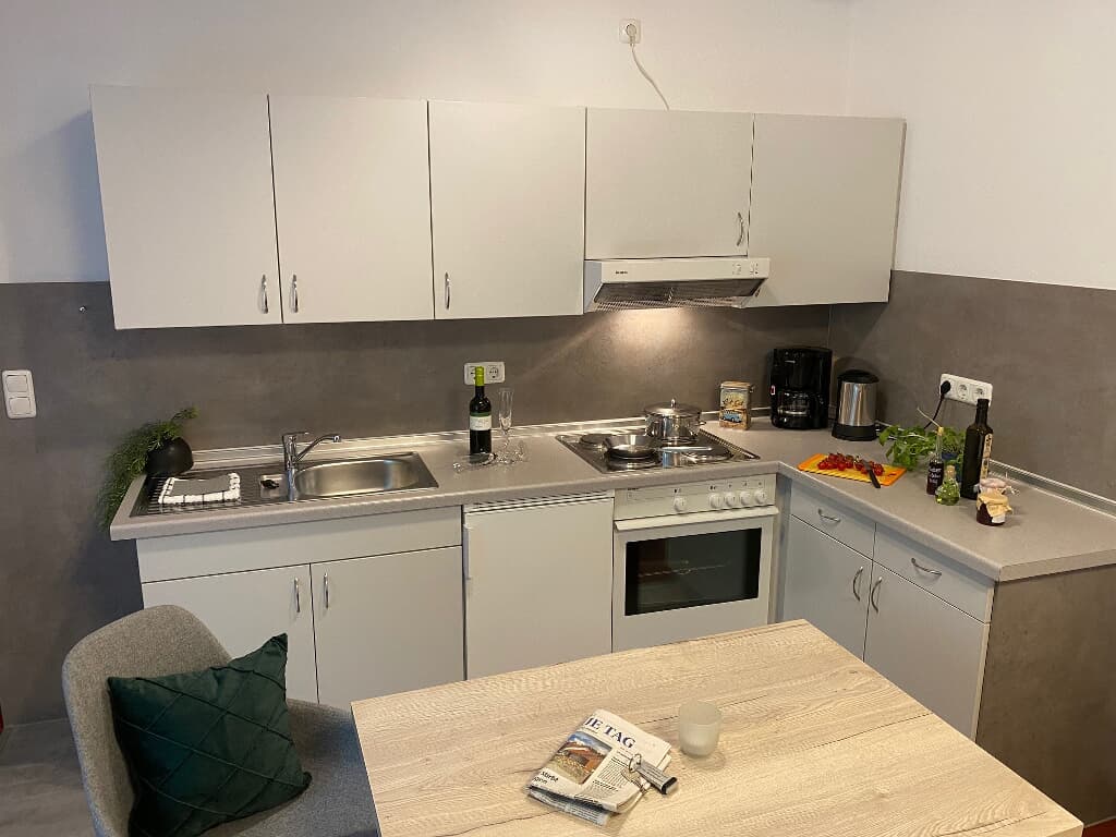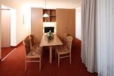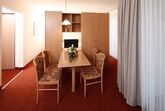 Kombinierter Wohn- und Schlafraum mit Doppelbett, gemütlicher Sitzecke, SAT-TV, Radio, Telefon, sowie freies W-Lan. Das Appartement verfügt über eine komplett ausgestattete Küche und Bad mit Dusche, WC und Föhn. Überwiegend Balkon verfügbar.