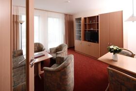 Separater Wohnraum mit gemütlicher Sitzgelegenheit, SAT-TV, Radio, Telefon, sowie freies W-Lan. Schlafraum mit zwei getrennten Betten. Die Suite verfügt über eine komplett ausgestattete Küche und Bad mit Dusche, WC und Föhn. Überwiegend Balkon verfügbar.