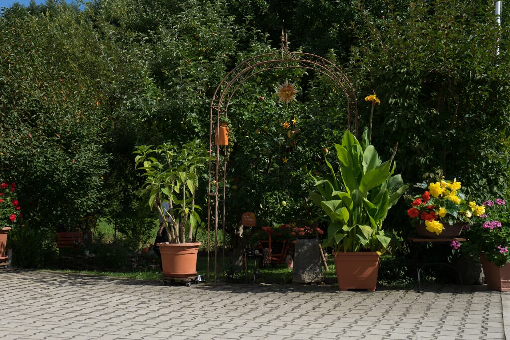 Im großzügigen Garten des Hauses können Sie, je nach Jahreszeit, verschiedenste Grün-, Blüh- und Nutzpflanzen bewundern. Um die verschiedenen Sitzmöglichkeiten herum entdecken Sie unzählige verspielte Details, die das Herz jedes Dekorations-Liebhabers höher schlagen lassen. Vom meditativen Steinkreis bis zum kitschigen Gartenzwerg ist für jeden etwas dabei. Ihre Gastgeber lassen sich gerne auf ein wenig Fachsimpelei rund um die grüne Oase ein.