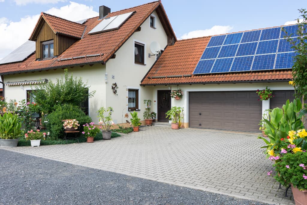 Das im Jahr 1993 erbaute Haus liegt am Ende einer Sackgasse. und verfügt über eine große Einfahrt sowie eine geräumige Garage. Dort haben Sie die Möglichkeit Ihre Fahrräder, E-Bikes oder Motorräder sicher und wetterfest unterzustellen. Die Solaranlage auf dem Dach heizt das Brauchwasser im ganzen Haus. Ebenso fließt ökologischer Strom, der durch die Photovoltaik-Anlage erzeugt wird.