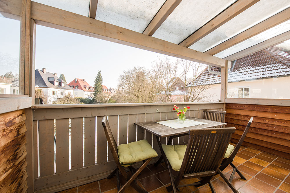 Genießen Sie Ihr Frühstück doch auf dem überdachten Balkon mit