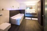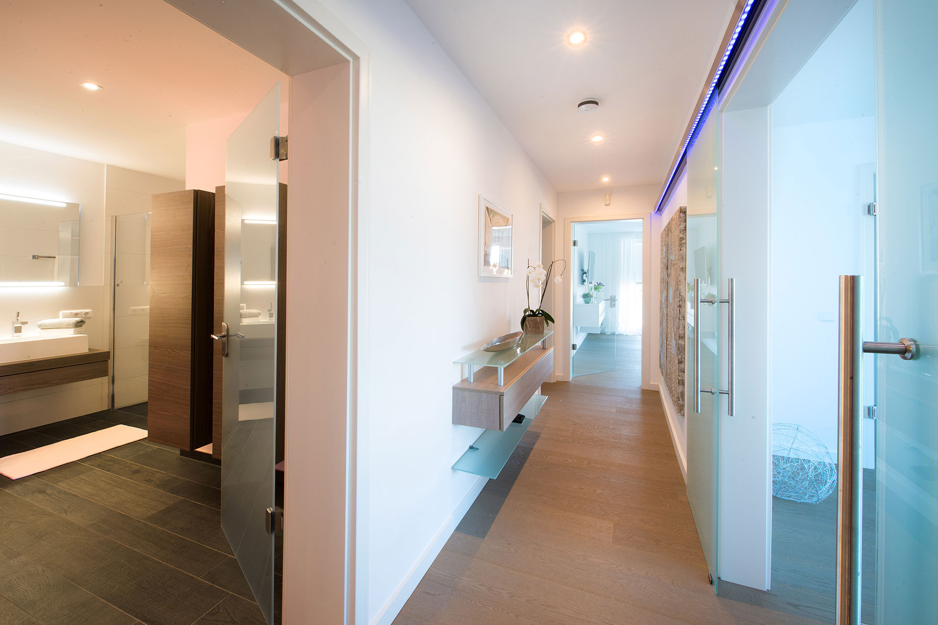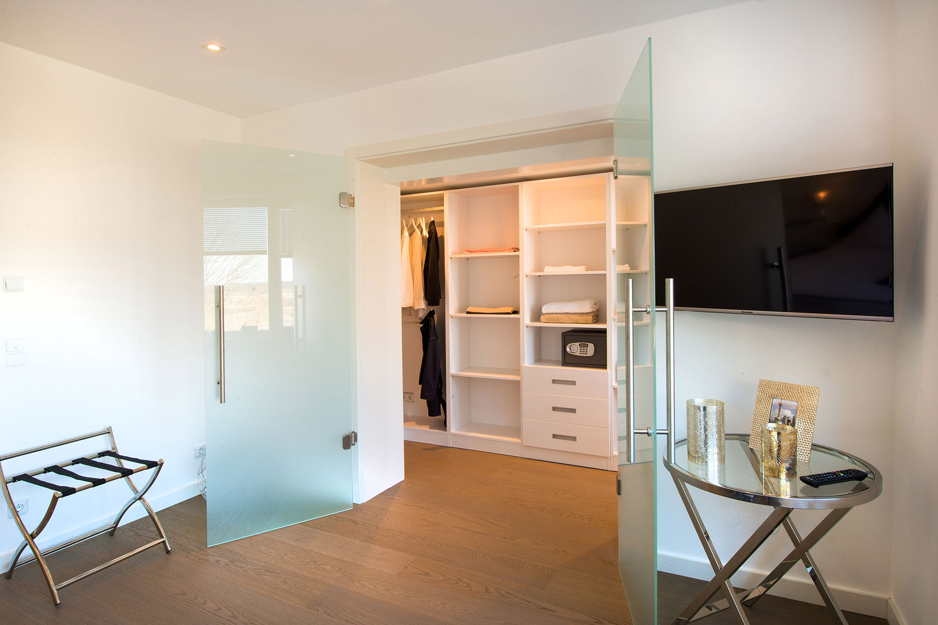 Privater Spa-Bereich mit Sauna, Rainshower-Dusche und beheiztem Day-Bed, Internetzugang/WLAN, 2 Kabel-TV, DVD-/Blu-ray-Player, CD-Player und Multi-Room-Soundsystem sind selbstverständlich. Hochwertige Bettwäsche, Bademäntel, Handtücher, Saunaöle, hochwertige Shampoos und Bodylotions, Fön und Safe, aber auch zahlreiche Dinge des täglichen Bedarfs sind vorhanden. Die Sonnenterrasse ist mit einer Sitzgruppe für 4 Personen und 2 Sonnenliegen ausgestattet. Waschmaschine und Trockner stehen zur Verfügung.
