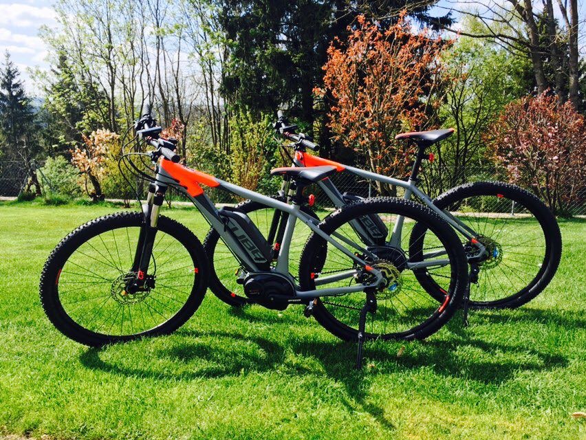 2 E-Bikes (Modell: CUBE Reaction Hybrid HPA Pro 500 grey´n´flashred, mit gefedertem Vorderrad, 21-Zoll-Rahmen bzw. 19-Zoll-Rahmen, Akku: Bosch-Powerpack 500), Tagesmiete pro Bike: nur 20,00 EUR inkl. USt
