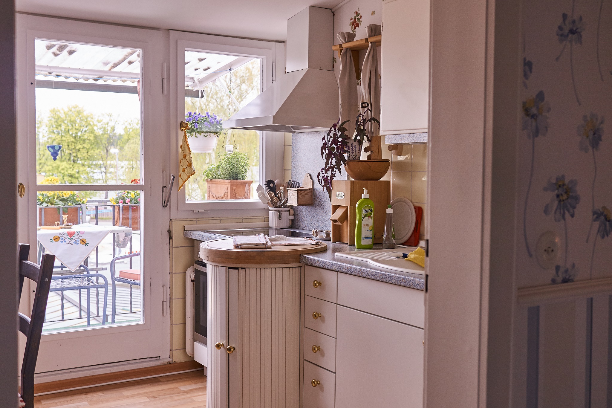 In der Küche finden sie einen Herd, Backofen, Kaffeemaschine, Toaster, Grill und Küchenutensilien vor. Vor der Küche befindet sich ein kleiner, gemütlicher Balkon.