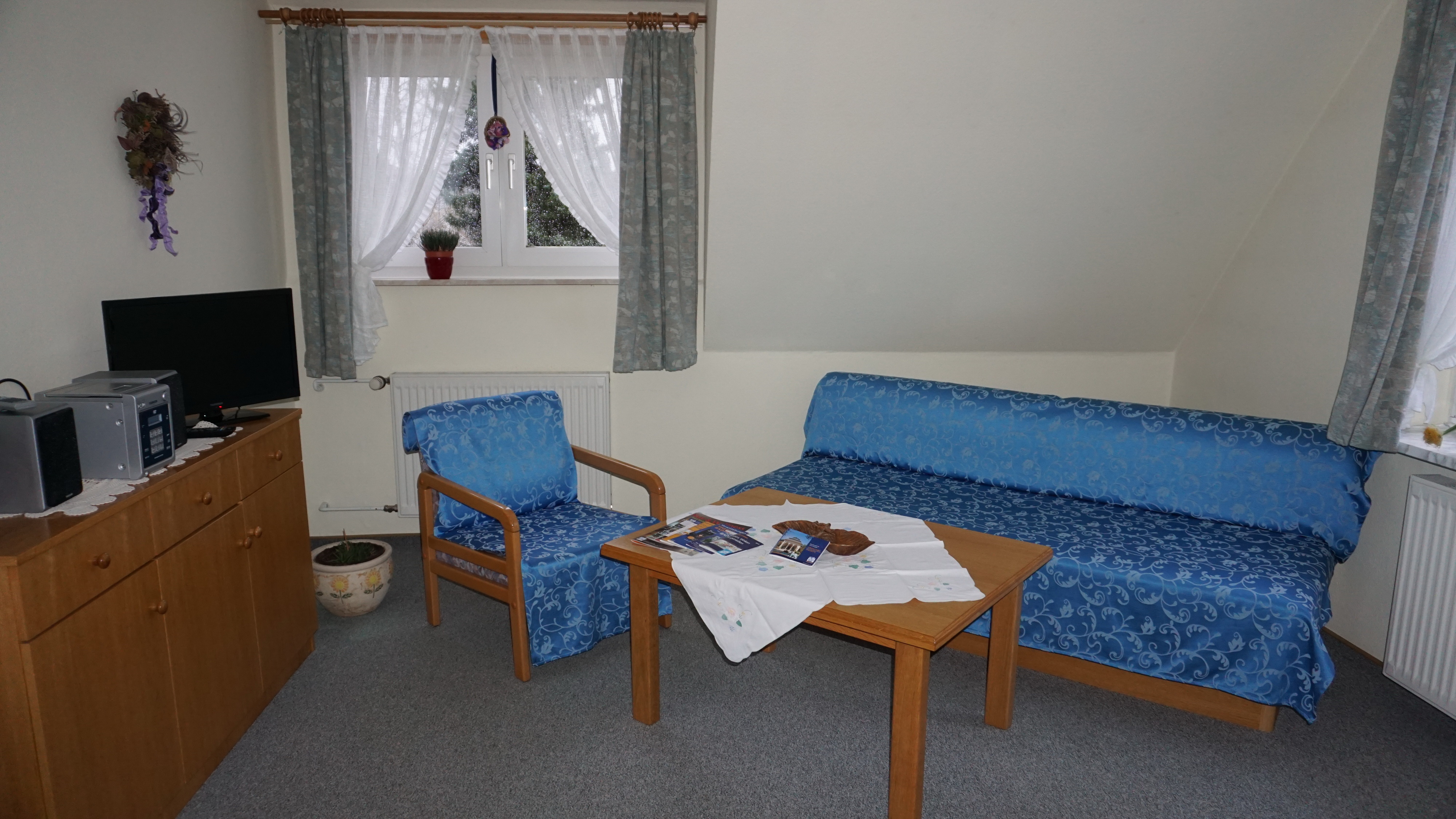 Unser gemütliches NR- Appartement 3 (55qm) mit Wohn-und Schlafraum (Doppelbett 2,00m x 2,00m), Küche und Dusche/WC ausgestattet liegt in der 1. Etage. Auf Wunsch ist Brötchenservice möglich oder Sie genießen mit Aufpreis unser leckeres Frühstücksbuffet in unserer nebenstehenden Pension.