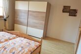mit einem Doppelbett und Kleiderschrank. Ein weiteres Schlafzimmer mit großer Schrankwand und massivem Etagenbett kann als Kinderzimmer genutzt werden. Das moderne Bad mit Waschbecken,