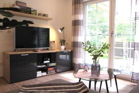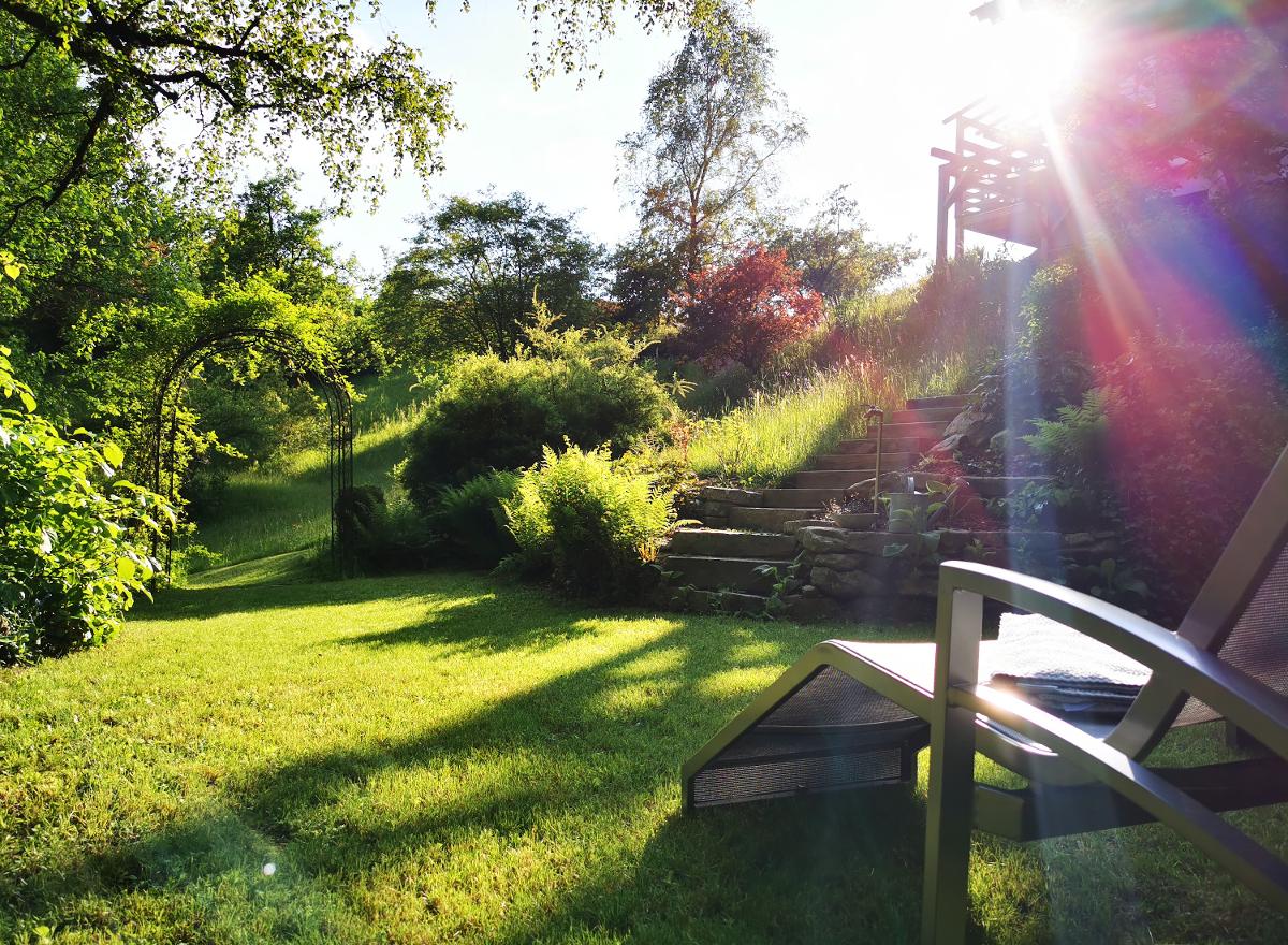 Verbringen Sie Ihren Urlaub in unserer komfortablen Ferienwohnung, tanken Sie frische Luft auf der Terrasse oder lassen Sie Ihren Blick über unseren Garten und die stattlichen Bäume schweifen.
