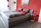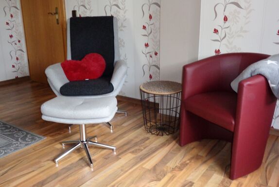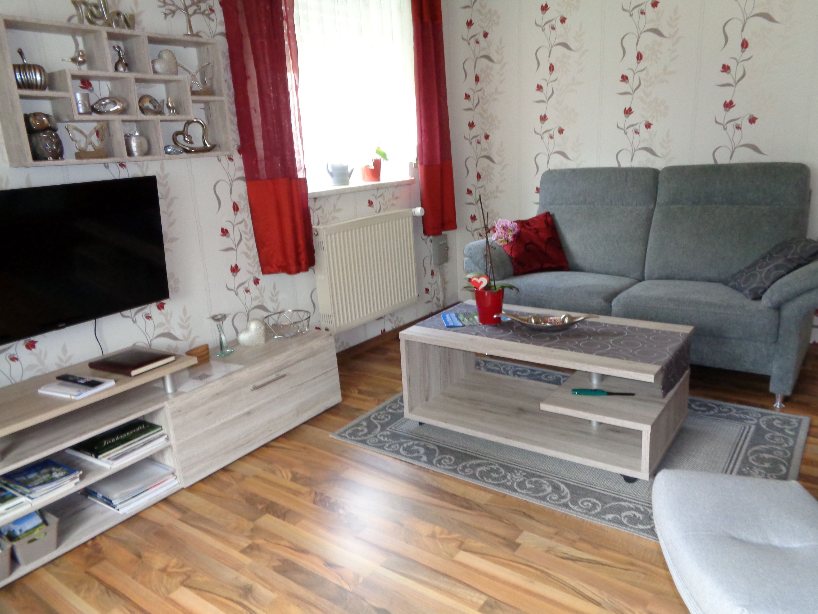 Unsere Ferienwohnung wurde 2020/21 komplett renoviert,sie verfügt über einen seperaten Eingang mit drei großen Zimmern,Schlafzimmer mit Doppelbett, Wohnzimmer mit zwei gemütlichen Sofas, mit Leseecke und Flachbildschirm. Einer komplett ausgestatteten Küche mit Spülmaschine mit Eckbank, Mikrowelle,Toaster und Geschirr mindestens 6-teilig.Das Badezimmer ist mit großer bodentiefer Dusche und Wasserfallbrause ausgestattet. In Küche und Badezimmer ist Fussbodenheizung verlegt. Auch können Sie W-LAN und ein Telefon kostenfrei nutzen. Eine große Terrasse steht Ihnen alleine zur Verfügung.