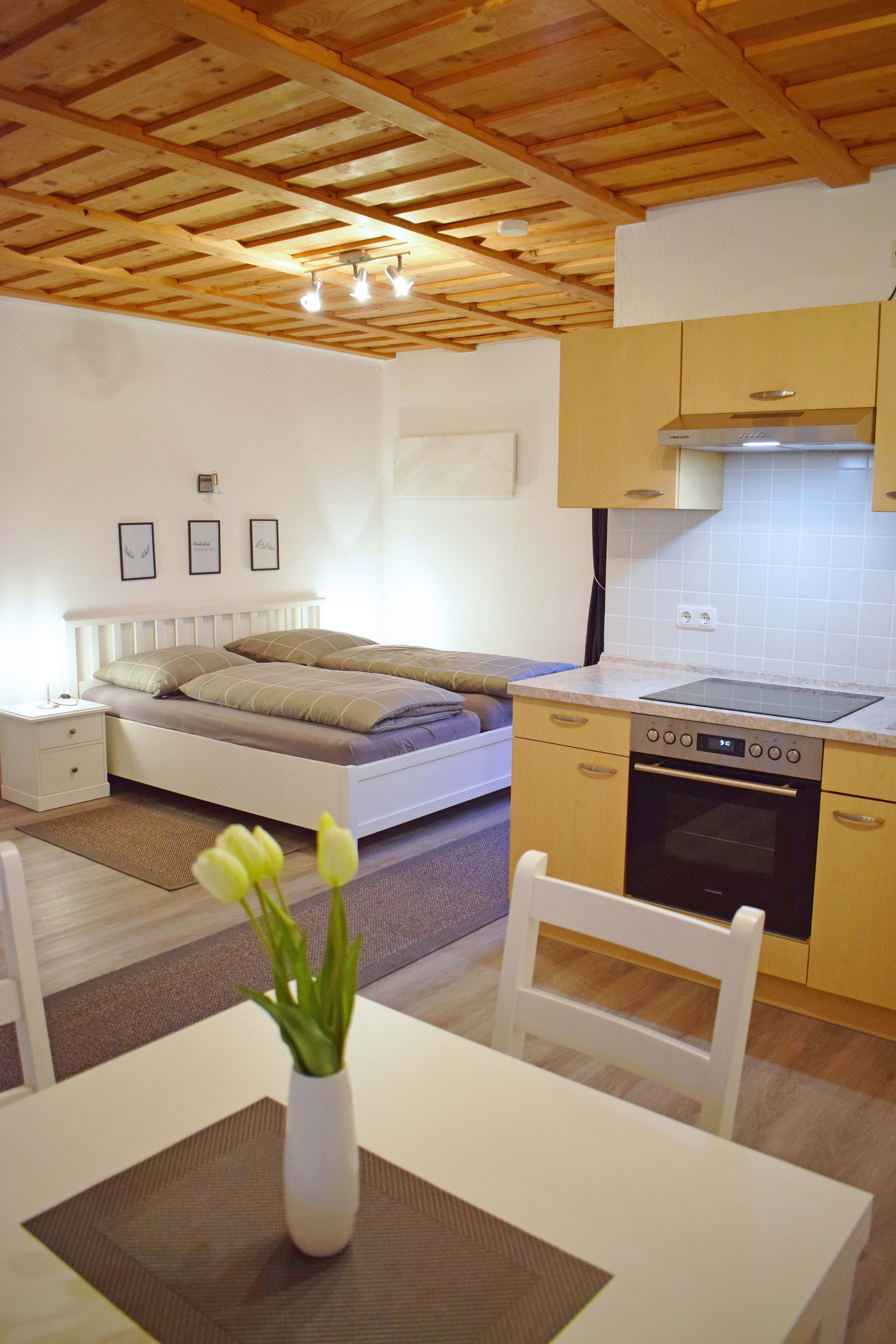 Das gemütliche 32qm große Ferienapartment bietet Platz für bis zu 3 Personen und liegt in Lichtenberg im Frankenwald. Das Apartment verfügt über einen eigenen Eingang, ein Doppelbett für die 3. Person ist ein Zustellbett möglich, eine komplett ausgestattete Küche mit Backofen und Cerankochfeld, Sat/TV sowie ein eigenes Badezimmer mit Dusche und WC. Des Weiteren sind auch noch ein überdachter Balkon und eine Dachterrasse geboten sowie kostenloses WLAN und Parkplätze. Das Apartment ist zudem auch noch als Einzelzimmer buchbar. Unsere Unterkünfte haben ruhige Waldrandlage, ohne Durchgangsverkehr mit Blick auf die mittelalterliche Burg und den Thüringer Wald. Wir bieten Ihnen gerne jeden Tag, wenn gewünscht, ein köstliches, nach Ihren Wünschen abgestimmtes Frühstück an. Das Frühstück servieren wir Ihnen zur gewünschten Zeit in Ihre Unterkunft.