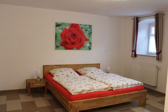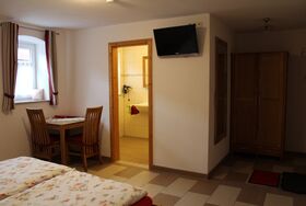 Unser gemütlich eingerichtetes ca. 22qm großes Doppelzimmer befindet sich im Erdgeschoss des Hauses. Ausgestattet ist es mit einer Sitzgelegenheit und einem Sat-TV inklusive Sat-Radioprogrammen. Der W-Lan Zugang ist kostenlos und das Rauchen im Zimmer nicht gestattet. Das Badezimmer verfügt über einen Fön, Dusche und WC. Ein Kinderreisebett/Kinderbett und ein Hochstuhl können zur Verfügung gestellt werden.