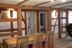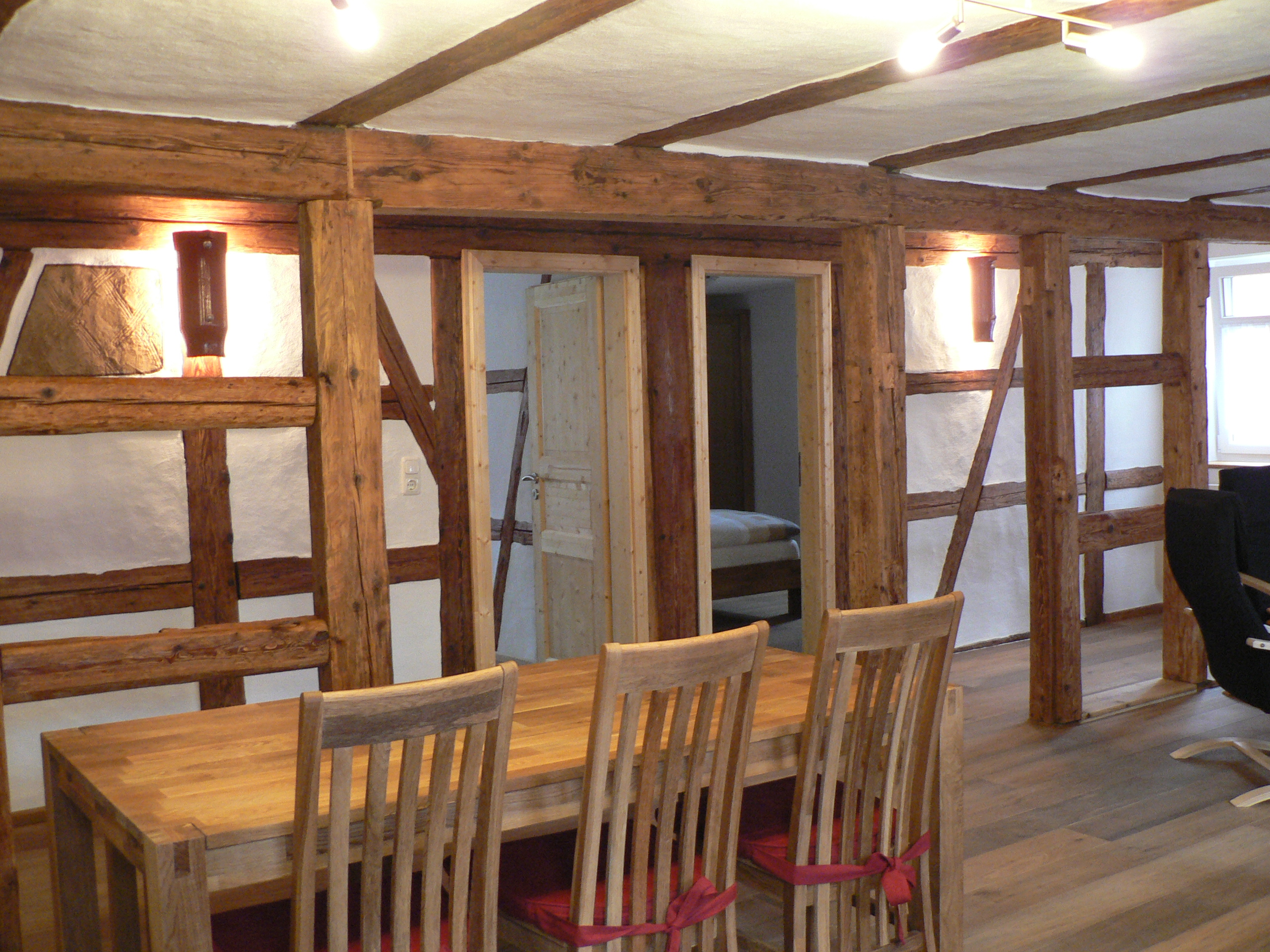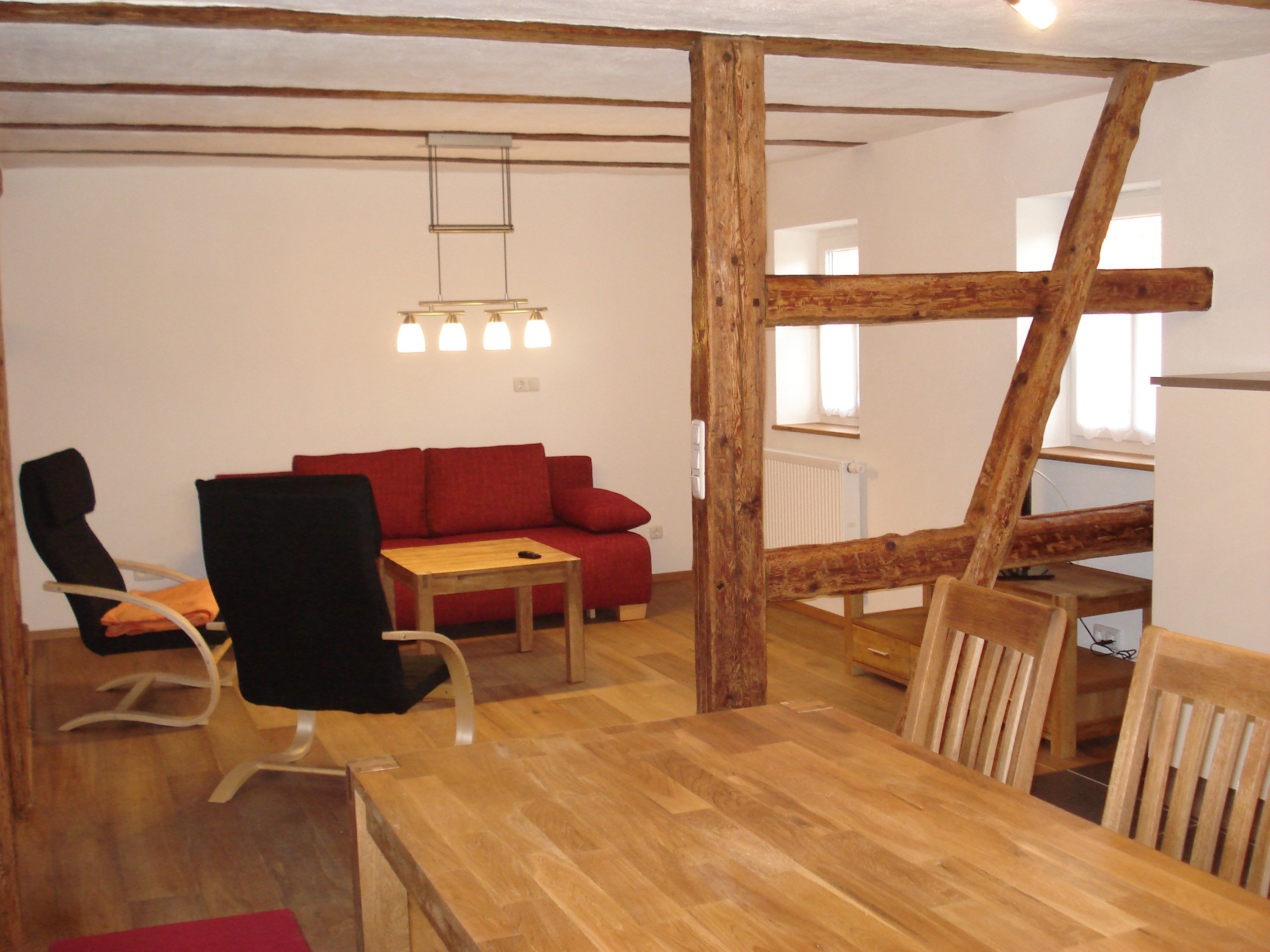 Die Ferienwohnung Knecht hat eine Größe von ca. 72qm. Der Name der Wohnung entstand dadurch, dass früher in diesem Bereich des Hauses Mägde und Knechte untergebracht waren. Die Wohnung befindet sich im ersten Stock des Hauses.
