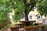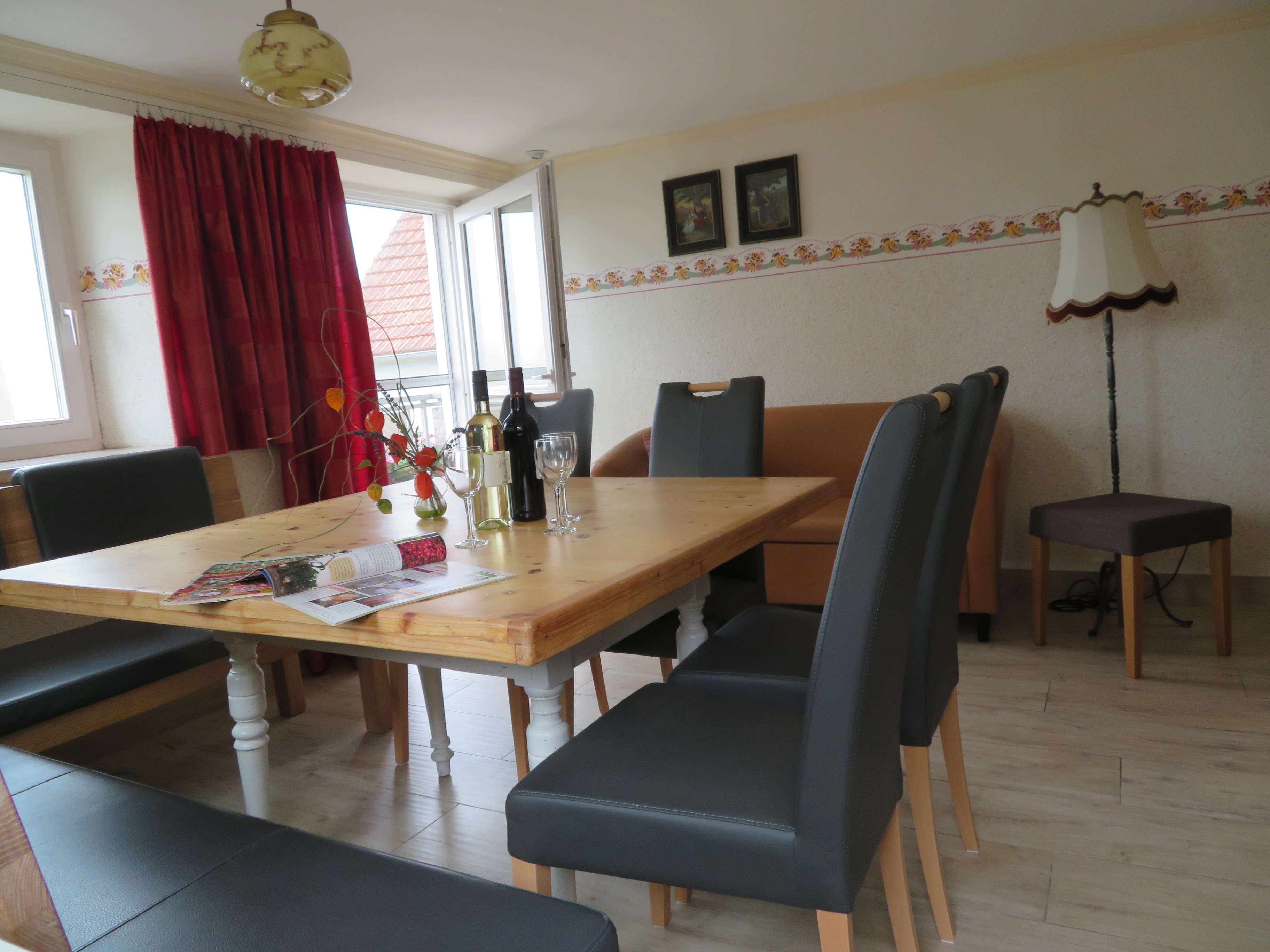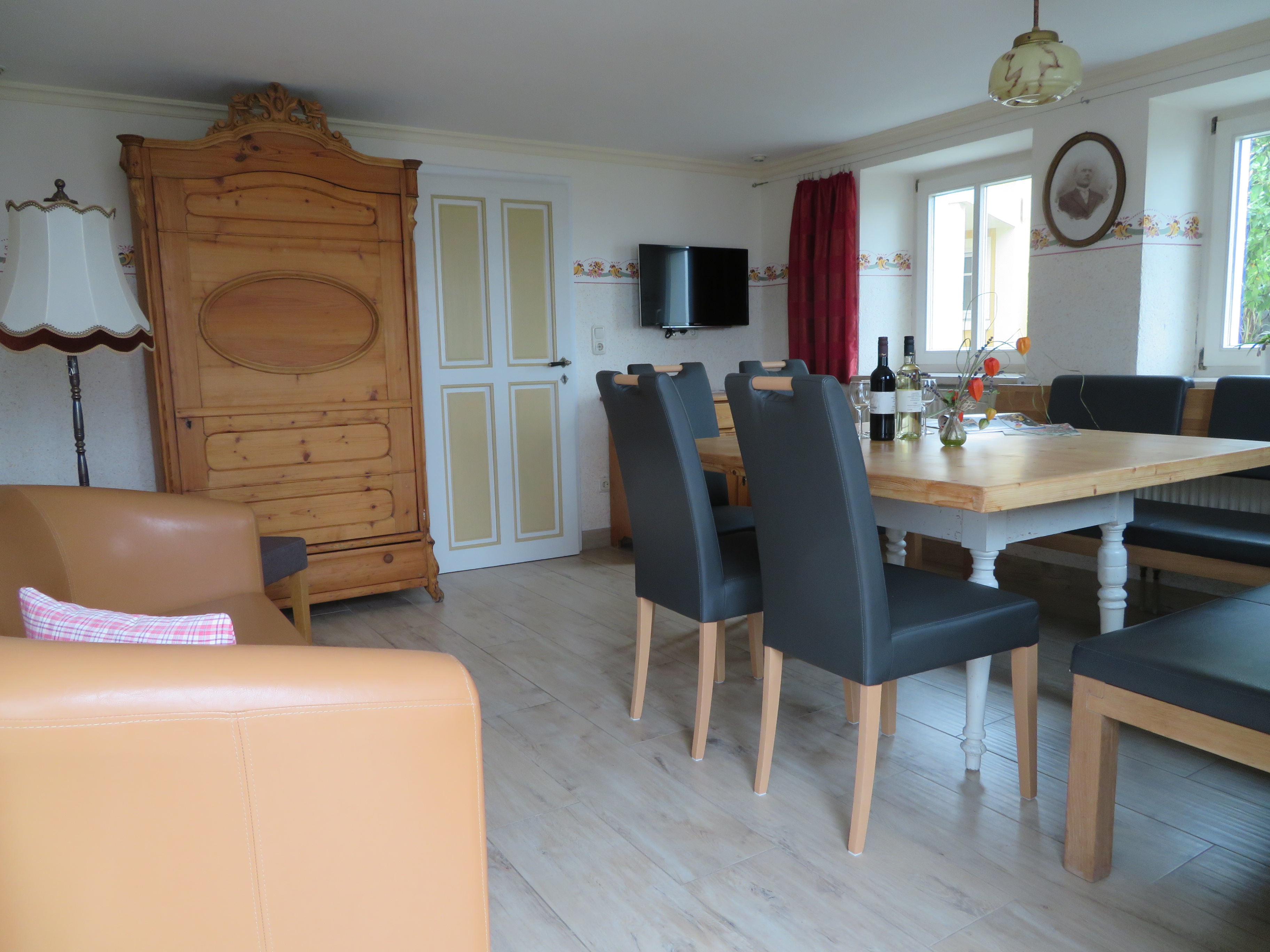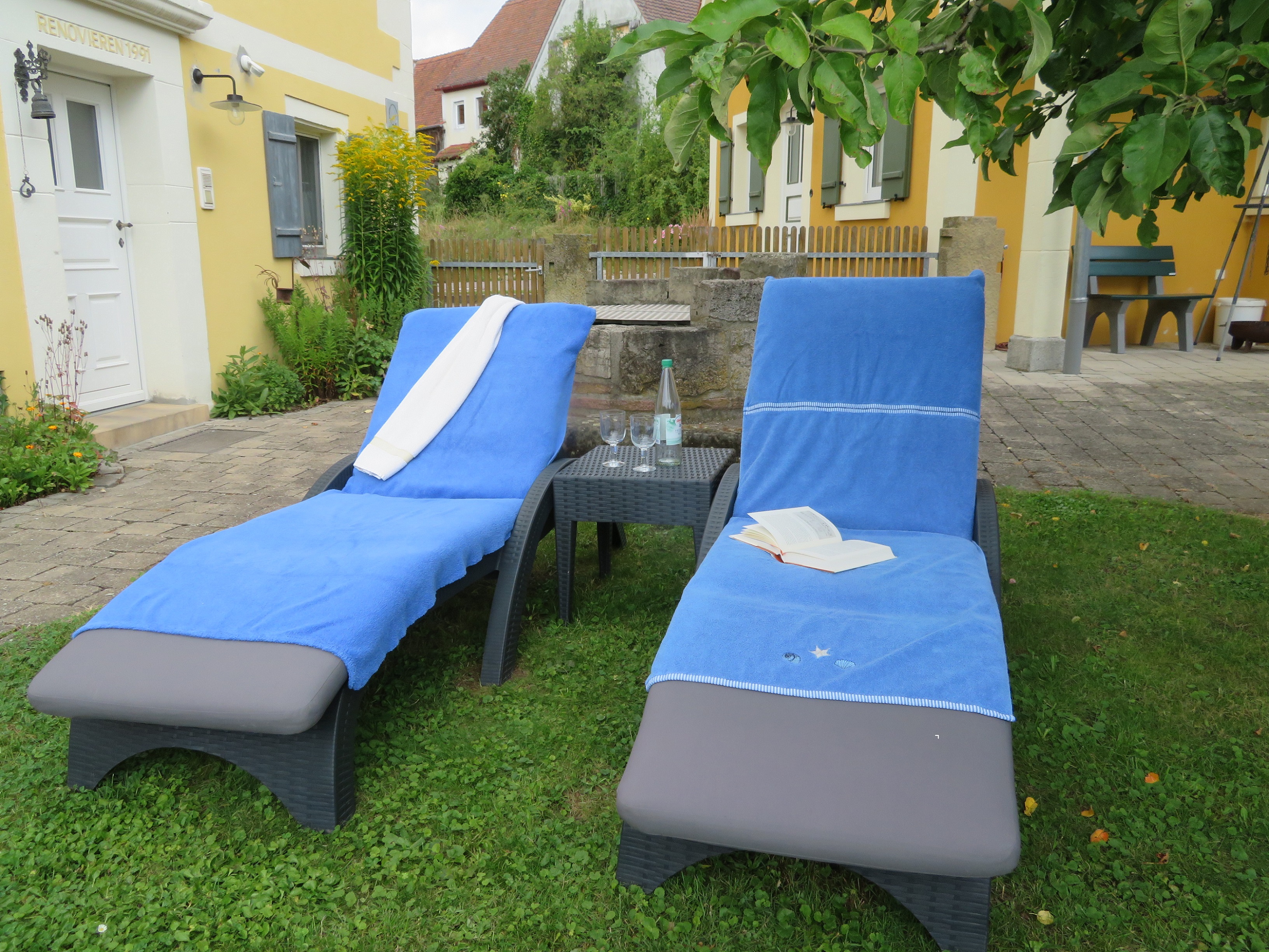 Neben vier Zweibettzimmern, einem gemütlichen Wohn- und Aufenthaltsraum mit großer Sonnenterasse für sonnenhungrige Gäste, finden auch diejenigen, die lieber im Schatten ihr Glas Fränkischen Apfelmost (von eigener Streuobstwiese) trinken, eine gemütliche Sitzecke unter einem alten Apfelbaum.