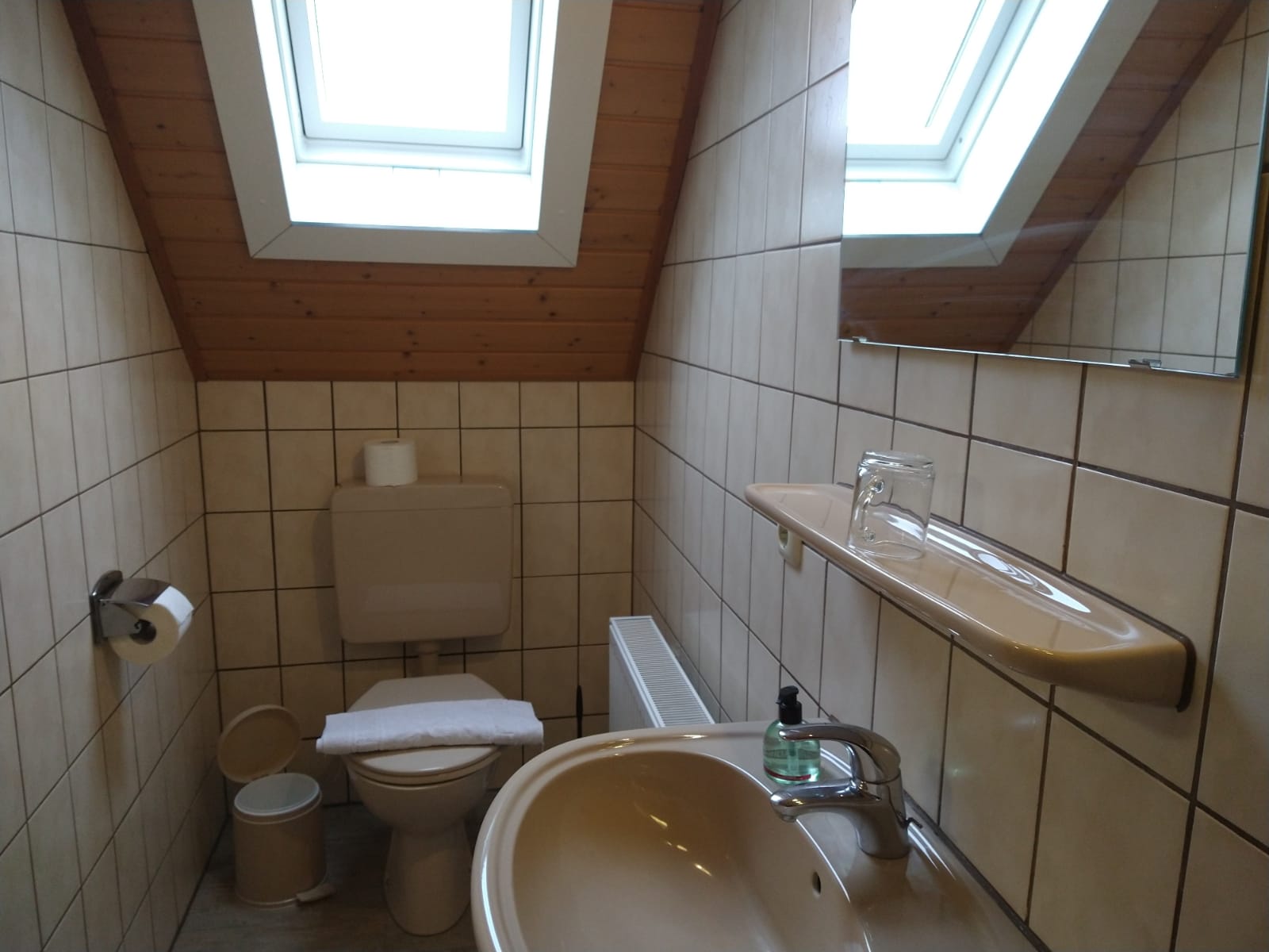 Das Zimmer befindet sich im 1. Stock und ist mit Sat-TV, Dusche und WC, Radiowecker, W-LAN und Föhn ausgestattet.