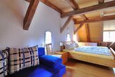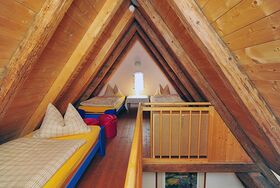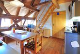 Schlafzimmer mit Doppelbett, Wohnküche, Bad / WC, über eine in der Wohnung liegende Treppe erreichbar die Galerie mit drei Einzelbetten