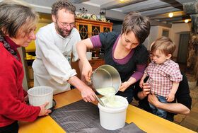 Wir sind ein landwirtschaftlicher Familienbetrieb am Fuße des Hesselbergs. Die Milch unserer 16 Kühe verarbeiten wir auf dem Hof zu verschiedenen Käsesorten. Bei unserem Käseseminar weihen wir Sie in die Geheimnisse des Käsemachens ein.