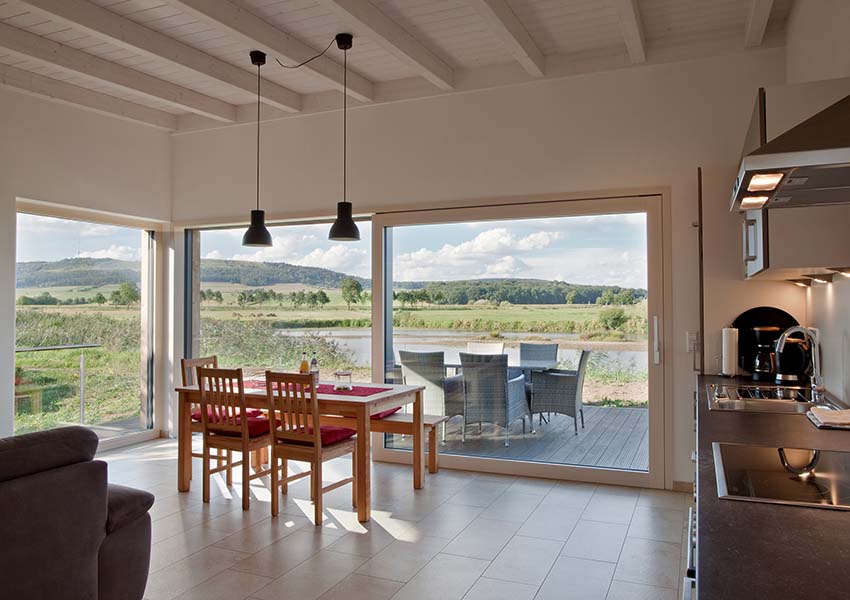 Der Bergblick liegt im Holzmassivhaus direkt an der Wörnitz.