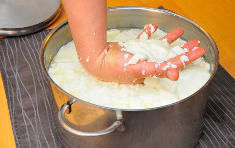 Wir sind ein landwirtschaftlicher Familienbetrieb am Fuße des Hesselbergs. Die Milch unserer 16 Kühe verarbeiten wir auf dem Hof zu verschiedenen Käsesorten. Bei unserem Käseseminar weihen wir Sie in die Geheimnisse des Käsemachens ein.