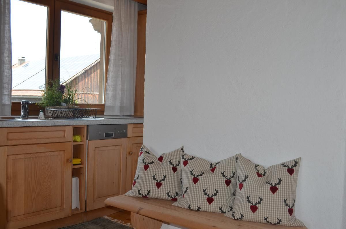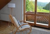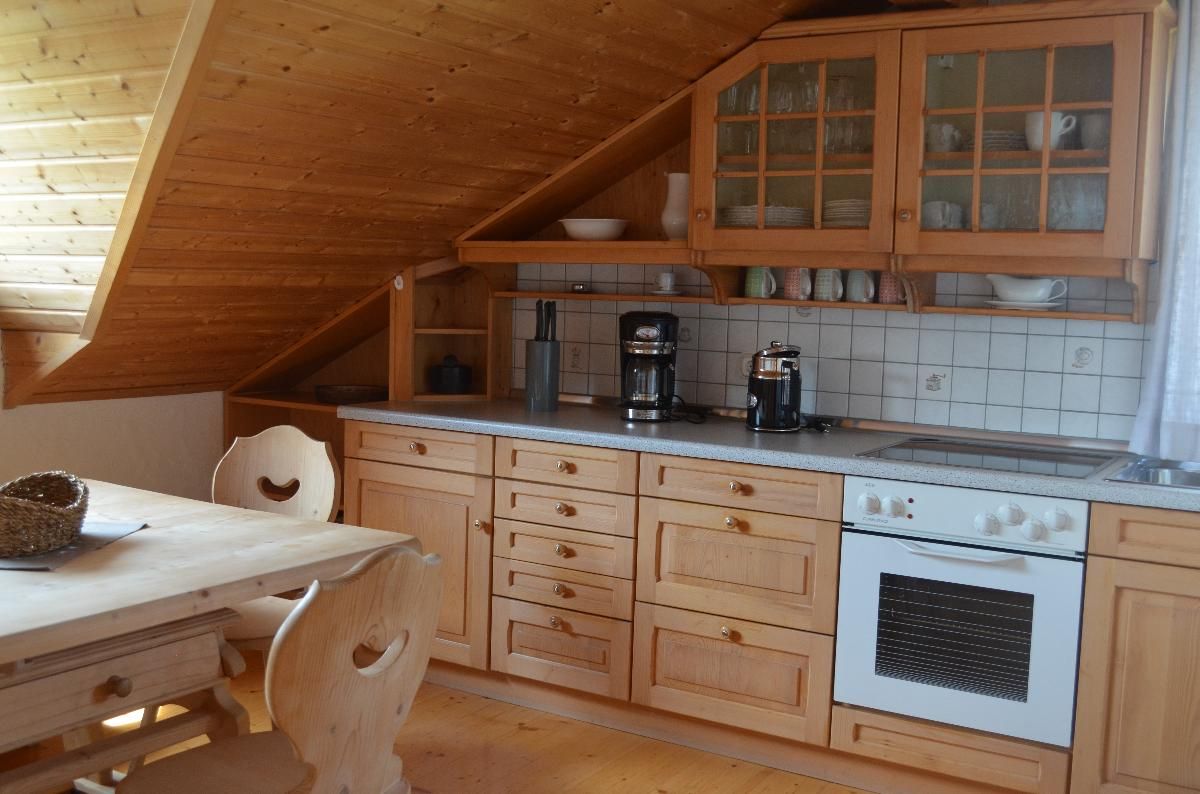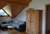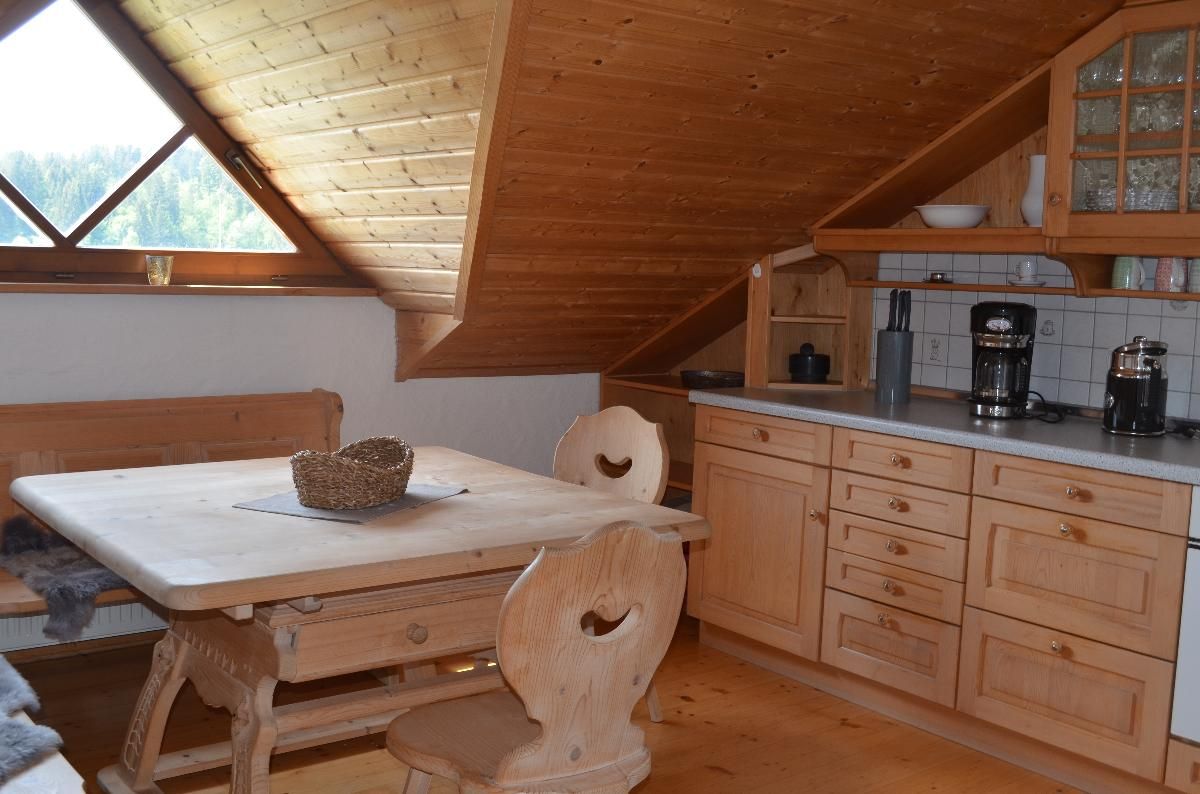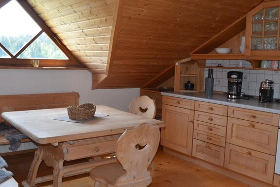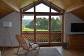Unsere traditionelle Ferienwohnung unter dem Dach ist sehr großzügig geschnitten. Mit einem Panoramafenster haben Sie eine wundervolle Aussicht.
