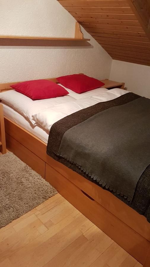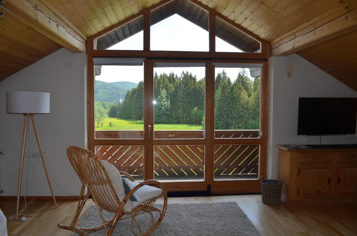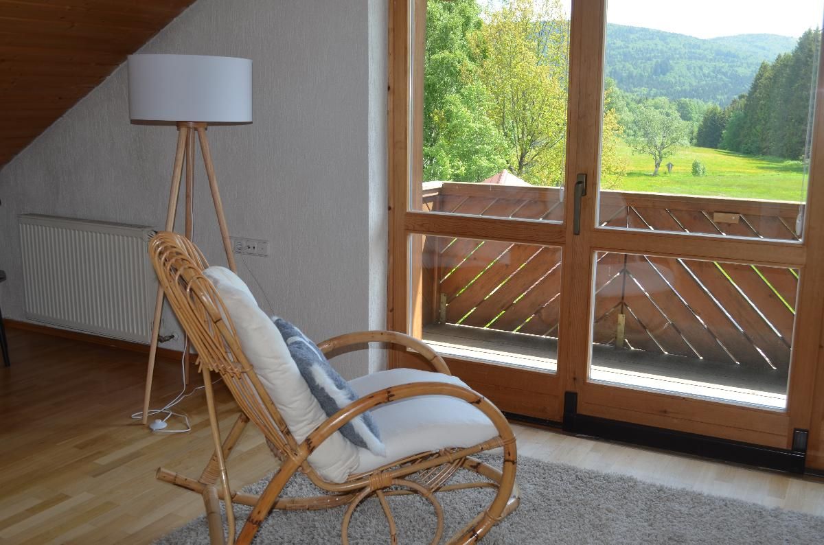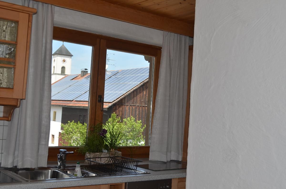 Unsere traditionelle Ferienwohnung unter dem Dach ist sehr großzügig geschnitten. Mit einem Panoramafenster haben Sie eine wundervolle Aussicht.