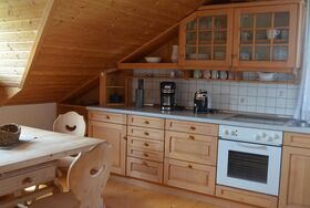 Die Herberge 3 Die TRADITIONELLE Ferienwohnung ist für 5 Personen ausgelegt. Sie ist sehr gemütlich dank der vielen Holzmöbel aus Fichtenholz und liegt im Dachgeschoss. Das Schlafzimmer ist mit einem bequemen Doppelbett ausgestattet. Im geräumigen Wohnzimmer steht eine Schlafcouch, die Platz für 3 Personen bietet und von der aus man super auf dem SAT-TV fernsehen kann. Außerdem ist dort ein Schaukelstuhl, der vor dem großen Panoramafenster steht. Dank dem Fenster ist der Raum lichtdurchflutet. Im Esszimmer ist eine hölzene Eckbank und ein hölzerner Tisch mit Stühlen. Die schöne Küche ist mit Kühlschrank, Wasserkocher, Kaffemaschine, Geschirrspüler sowie allen nötigen Utensilien und Besteck ausgestattet. Bettwäsche, Handtücher und Toilettenpapier werden gestellt. Das große, moderne Bad besteht aus Dusche, WC und Fön. Des Weiteren können Sie die Sonne auf Ihrem Balkon genießen.