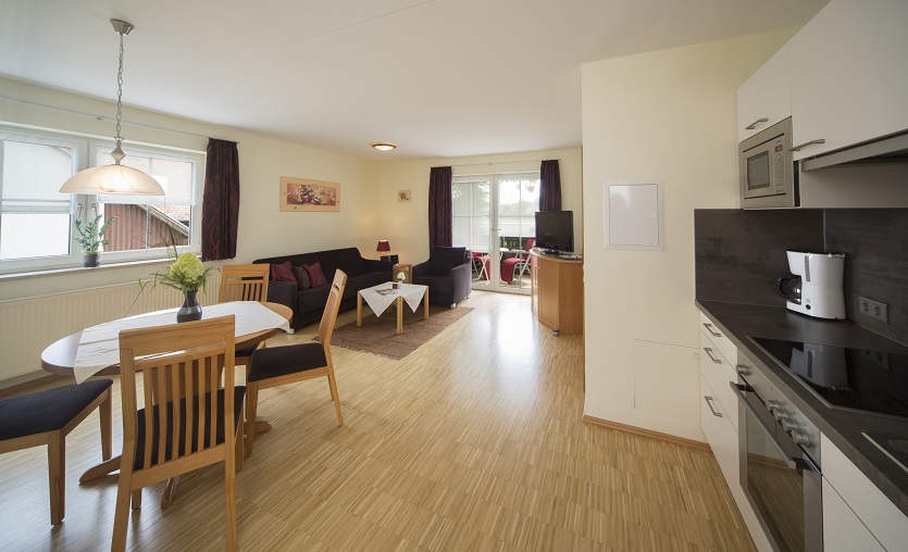 Telefon, kostenloses W-LAN und Flatscreen/SAT-TV bieten Ihnen den gewohnten Komfort. Die Küche ist mit Spülmaschine, Mikrowelle und Cerankochfeld ausgestattet, im Wohnraum kommt eine Mini-Kompaktanalage dazu. Genießen Sie schönes Wetter auf den Südbalkons und Terrassen.