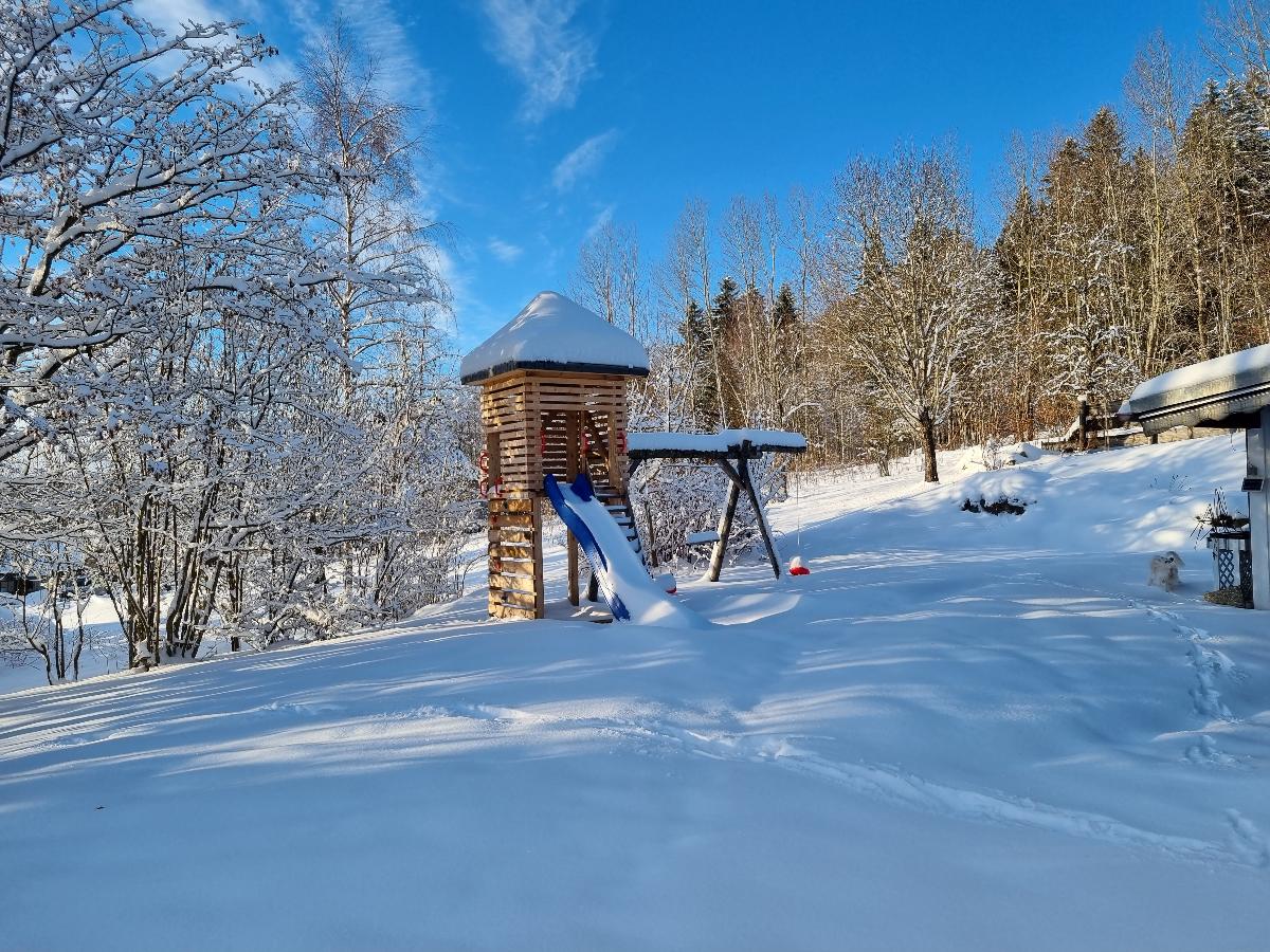 Weitere Annehmlichkeiten unseres Ferienhauses Mauth: 2 Terrassen, 2 Wintergärten, 2 separate WC, 2 Schlitten und ein Schnee-Wok, Feuerschale, Grill, Grillstelle, Spielplatz, kostenloses WLAN. Außerdem ist unser Ferienhaus Mauth äußerst kinderfreundlich eingerichtet: Schutzgitter an den Treppen, Kindersicherung an allen Steckdosen, 2 Kinderstühle, Babywiege, Wickeltisch und eine kleine Ausstattung Spielsachen.