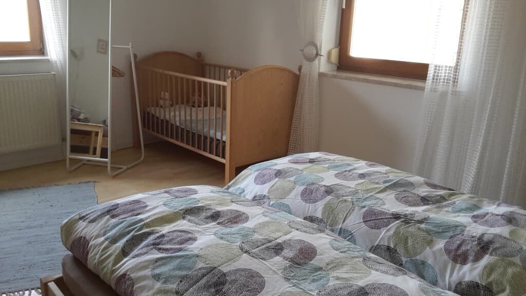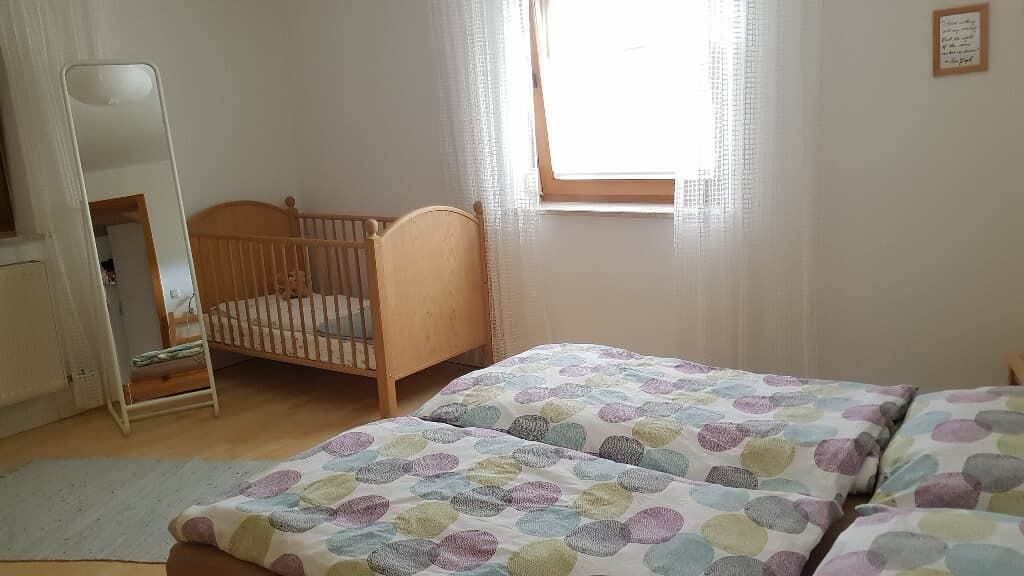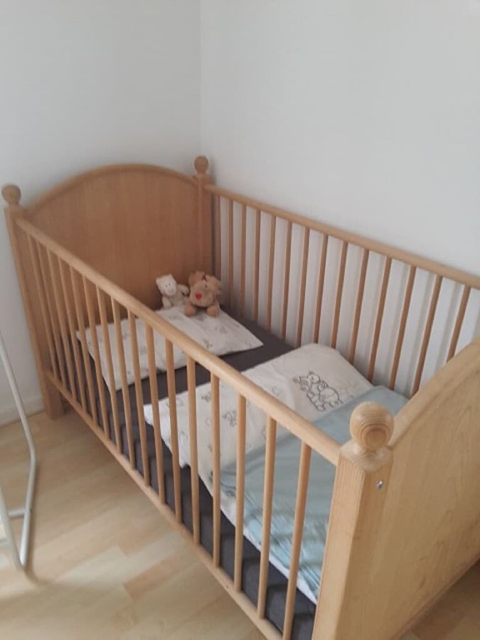 Zudem ist ein Kinderbett/Gitterbett (70 x 140 cm) für Kleinkinder vorhanden bei Bedarf.