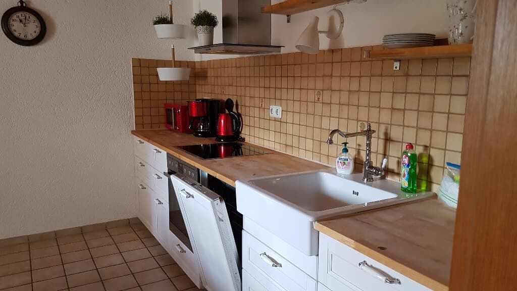 Ihre Mahlzeiten können Sie sich in der modernen Küche ausgestattet mit Backofen, Geschirrspüler, Induktionsofen und großen freistehender Kühlschrank mit Gefrierfach und einem Essbereich zubereiten.