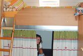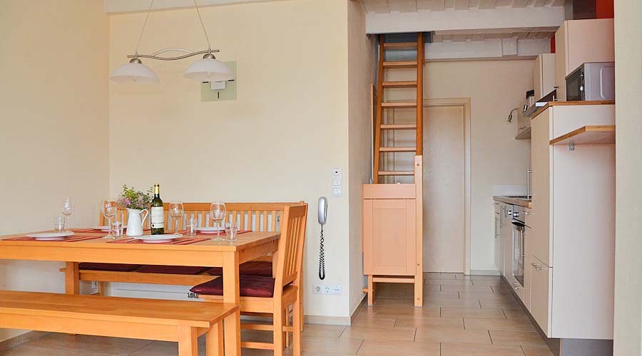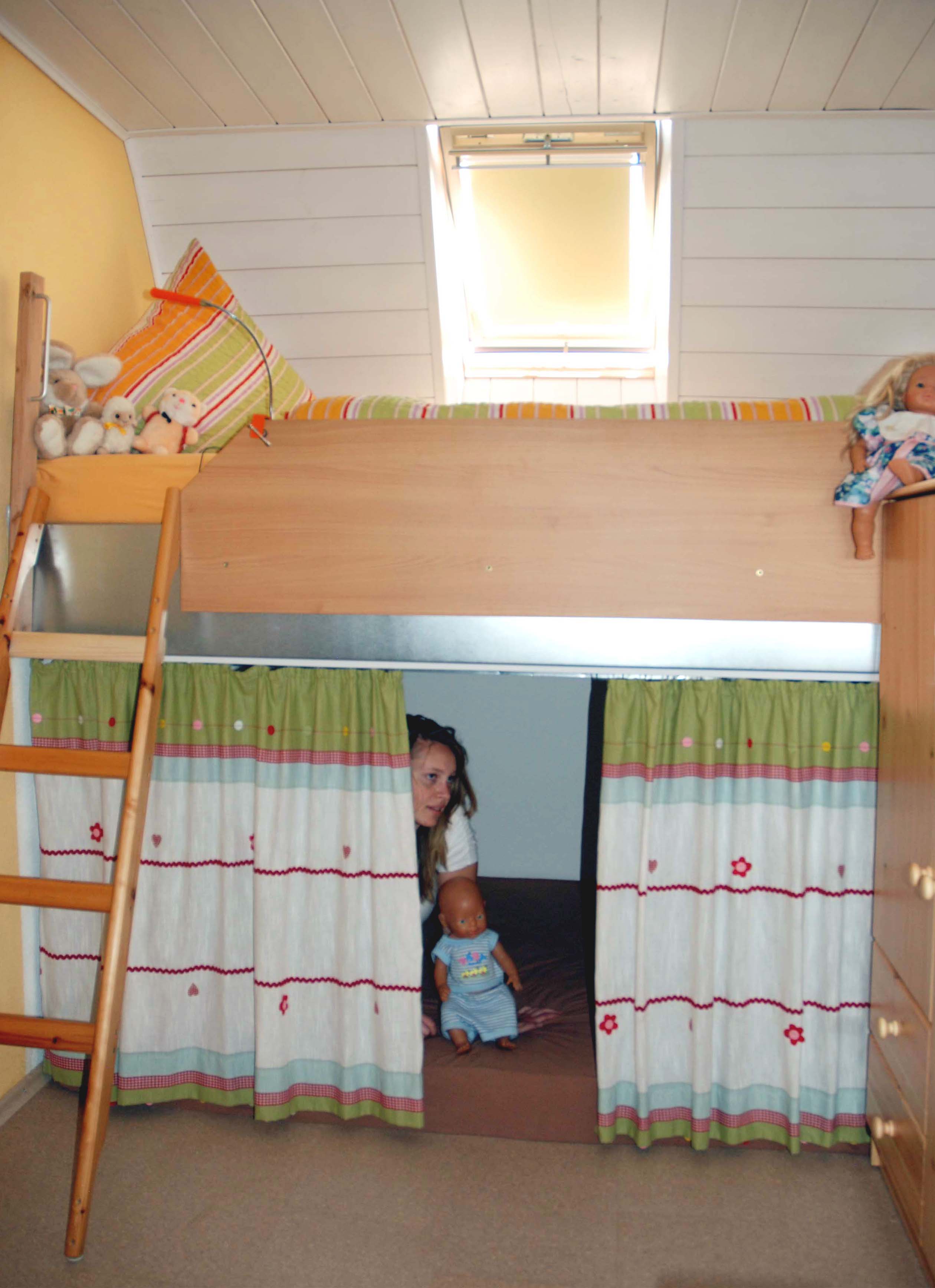 Das 50 qm große Strohlager ist genau das richtige für Familien mit etwas größeren Kindern. Hier ist die Schlafgalerie der Kinder über eine Treppe zu erreichen. Besonders die Kuschelhöhle sorgt hier immer wieder für strahlende Kinderaugen. Bettwäsche und Handtücher sind vorhanden.