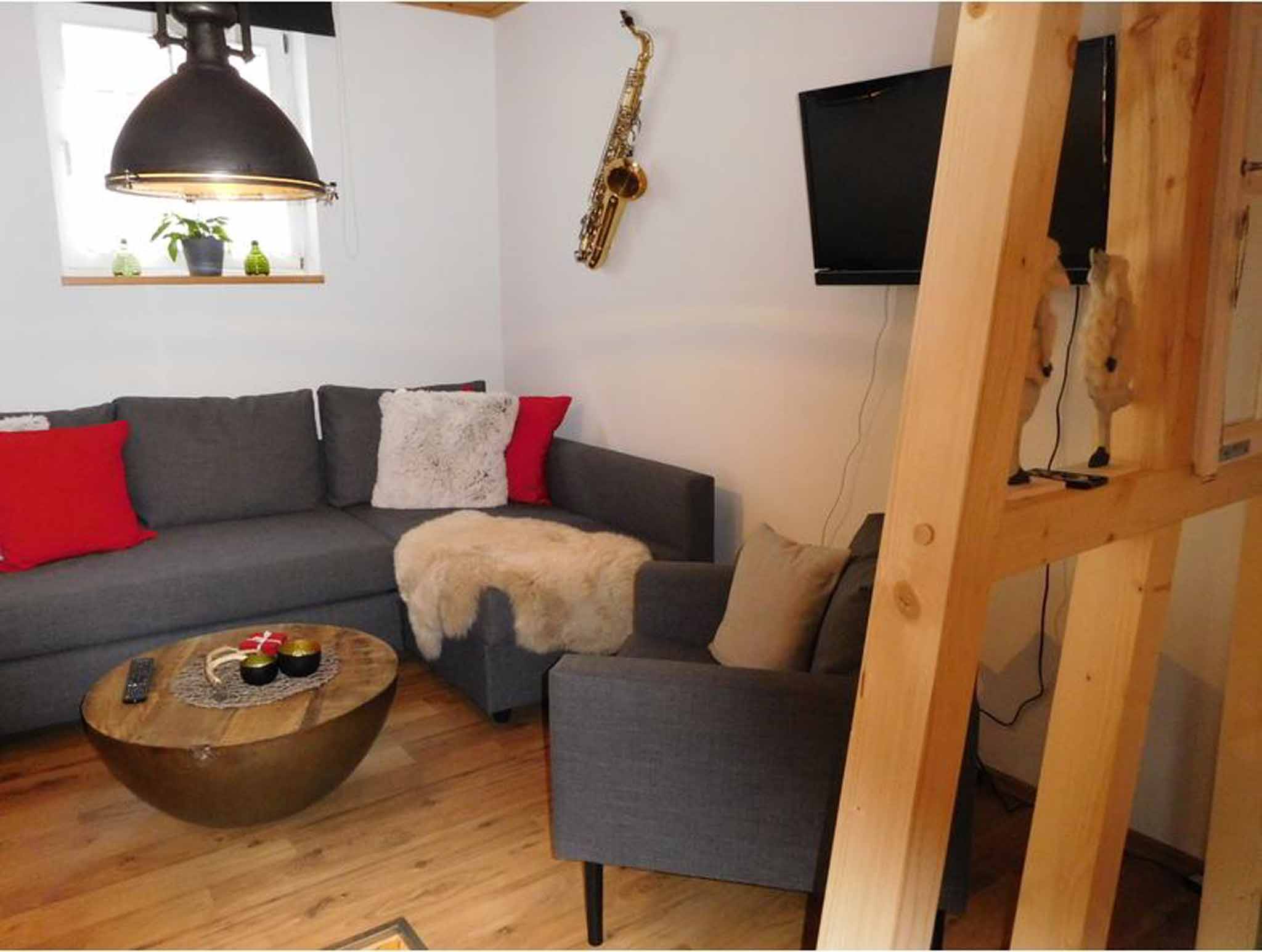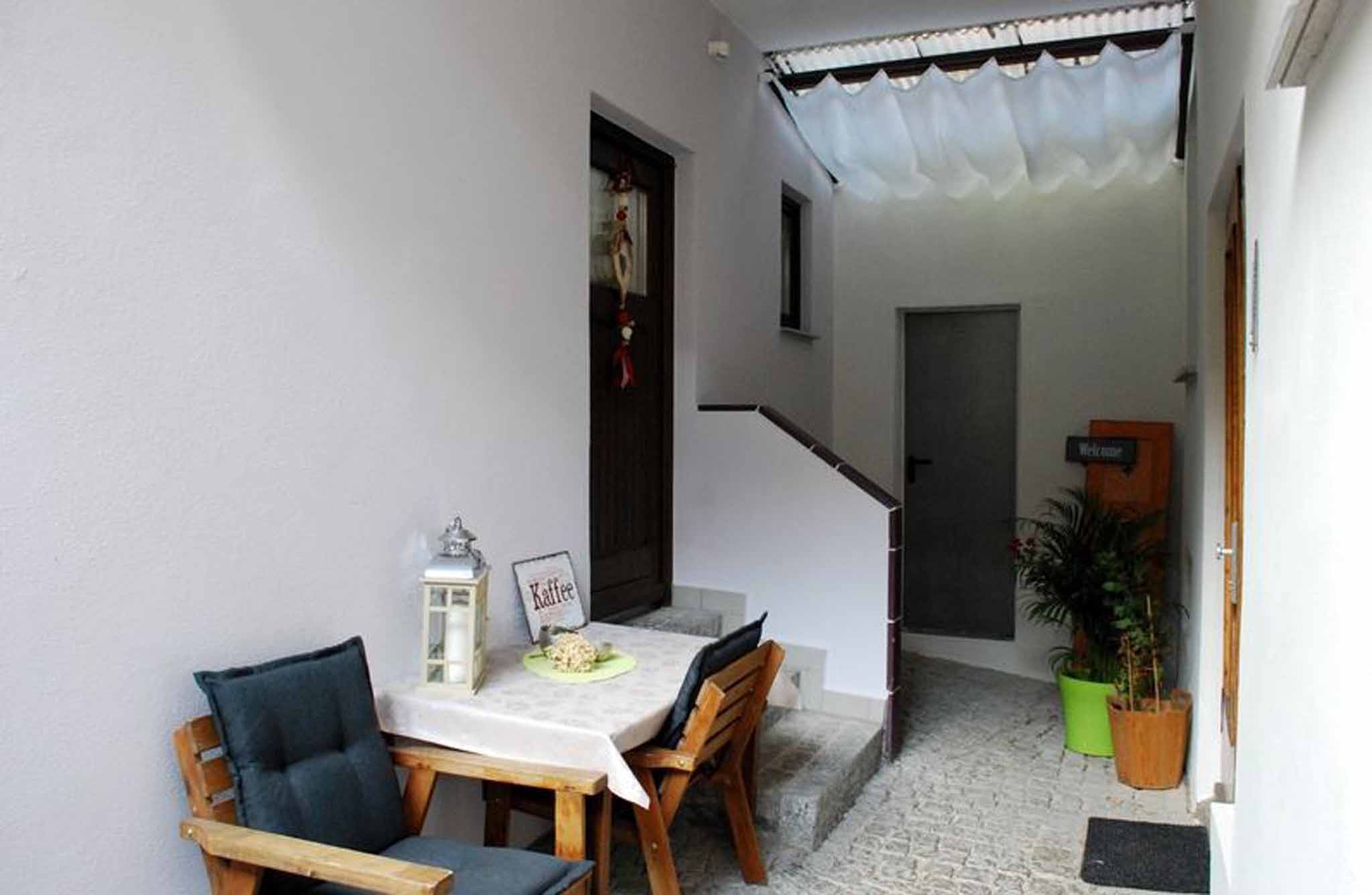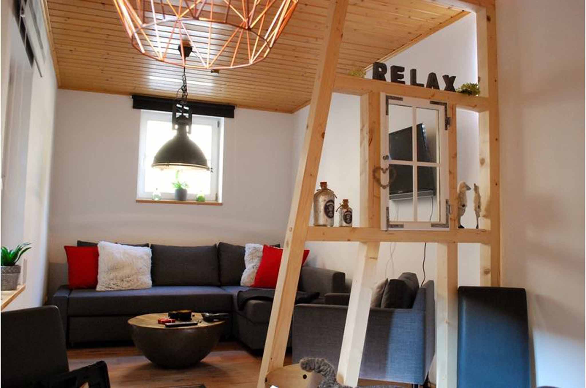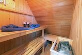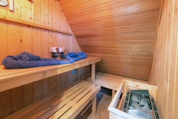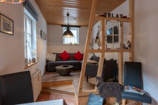 Ein gemütliches, komfortables Ferienhaus auf zwei Etagen, hat eine Wohnfläche von 70 m² und bietet für 2-3 Personen ausreichend Platz. Im Erdgeschoss befindet sich ein Wohnzimmer mit einem komfortablen Wohnlandschaft, sowie eine durch ein Fachwerk abgetrennte Essecke und einer reichhaltig, ausgestatteten Küchenzeile. Im Obergeschoss finden Sie das große Schlafzimmer mit einem Doppel-Boxspringbett und einem Einzelbett, zwei Bäder im EG und OG mit Du oder Badewanne und jeweils WC, sowie einer Vital-Sauna mit Lichttherapie. Im Außenbereich ist eine möblierte und überdachte Sitzgelegenheit.